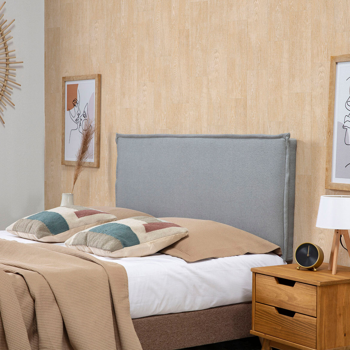 - Estrutura rígida de contraplacado que alivia o peso da cabeceira para que possa ser facilmente fixada à parede.