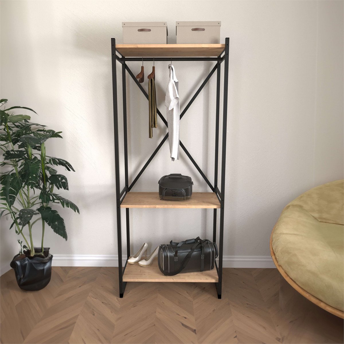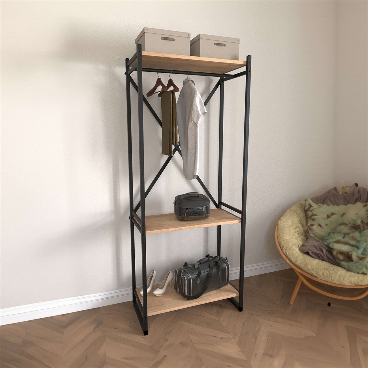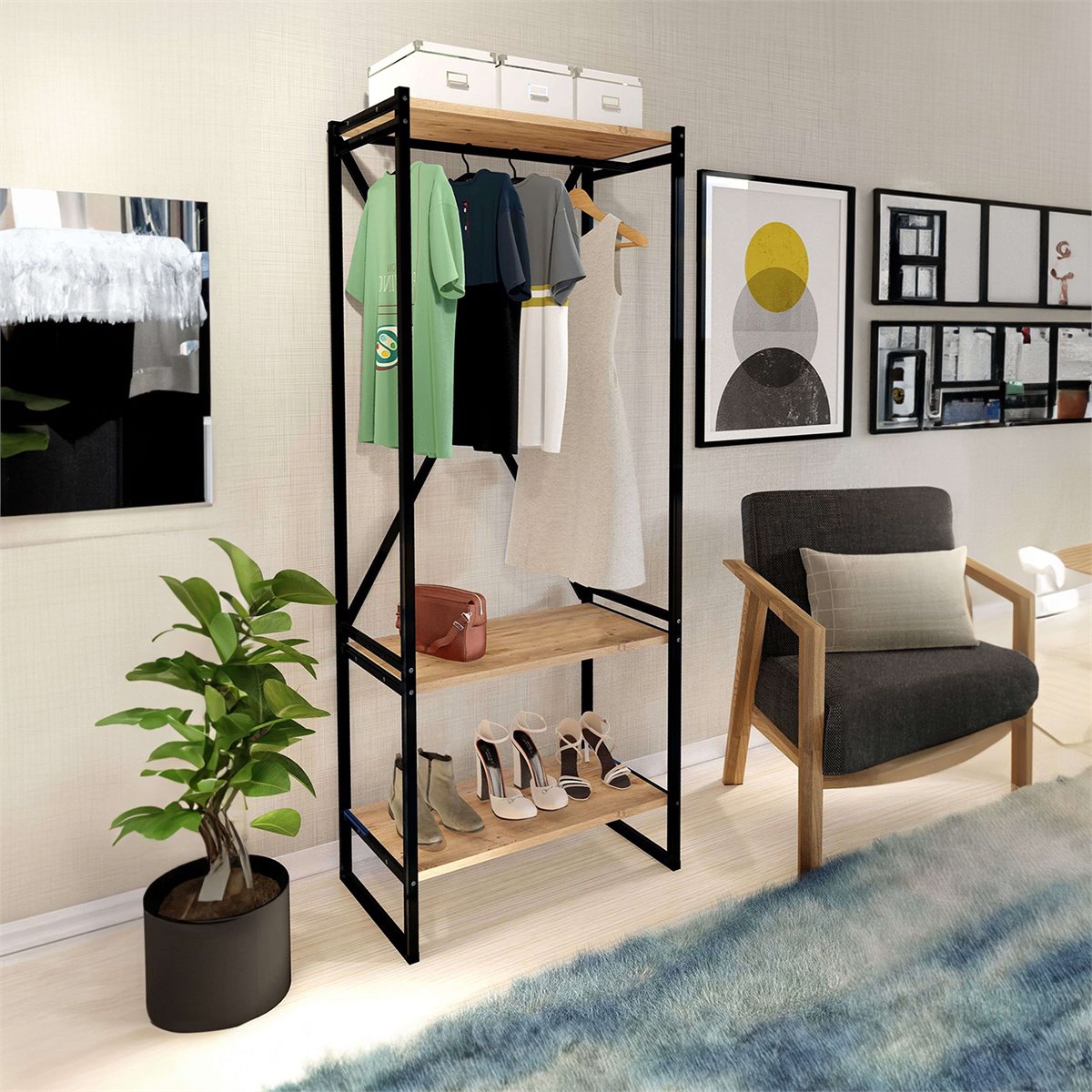 Mergulhe na elegância contemporânea com a Estante Rus, uma peça que redefine a beleza de qualquer espaço. Com duas prateleiras generosas e uma barra inteligentemente integrada, esta estante é a solução perfeita para organizar tudo, desde as suas leituras favoritas até às suas peças decorativas mais apreciadas. Feito em melamina e metal, este móvel tem acabamento em carvalho safir nas prateleiras e preto na estrutura, conseguindo um visual industrial com personalidade. Não perca a oportunidade de transformar a sua casa com a Estante Rus e fazer com que o seu espaço se destaque e reflita o seu bom gosto. Compre esta peça agora e comece a aproveitá-la em primeira mão. Medidas: Largura 160cm Altura 66cm Profundidade 34cm Trata-se de um móvel com kit de montagem, que inclui manual de instruções e parafusos.