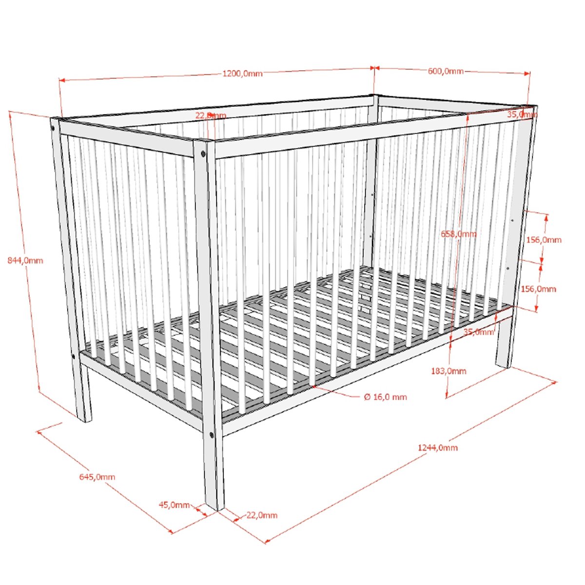 Cama de grades Vipack Meryl Antracite 60x120 incluindo base de ripas