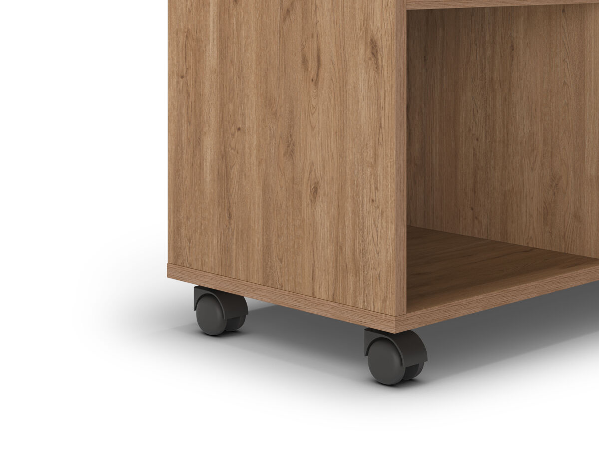 Possui dois compartimentos abertos. Reorganize o seu espaço com facilidade graças às rodas na base. Esta é uma escolha versátil e funcional para qualquer casa ou escritório, graças ao seu design prático e às suas rodas.