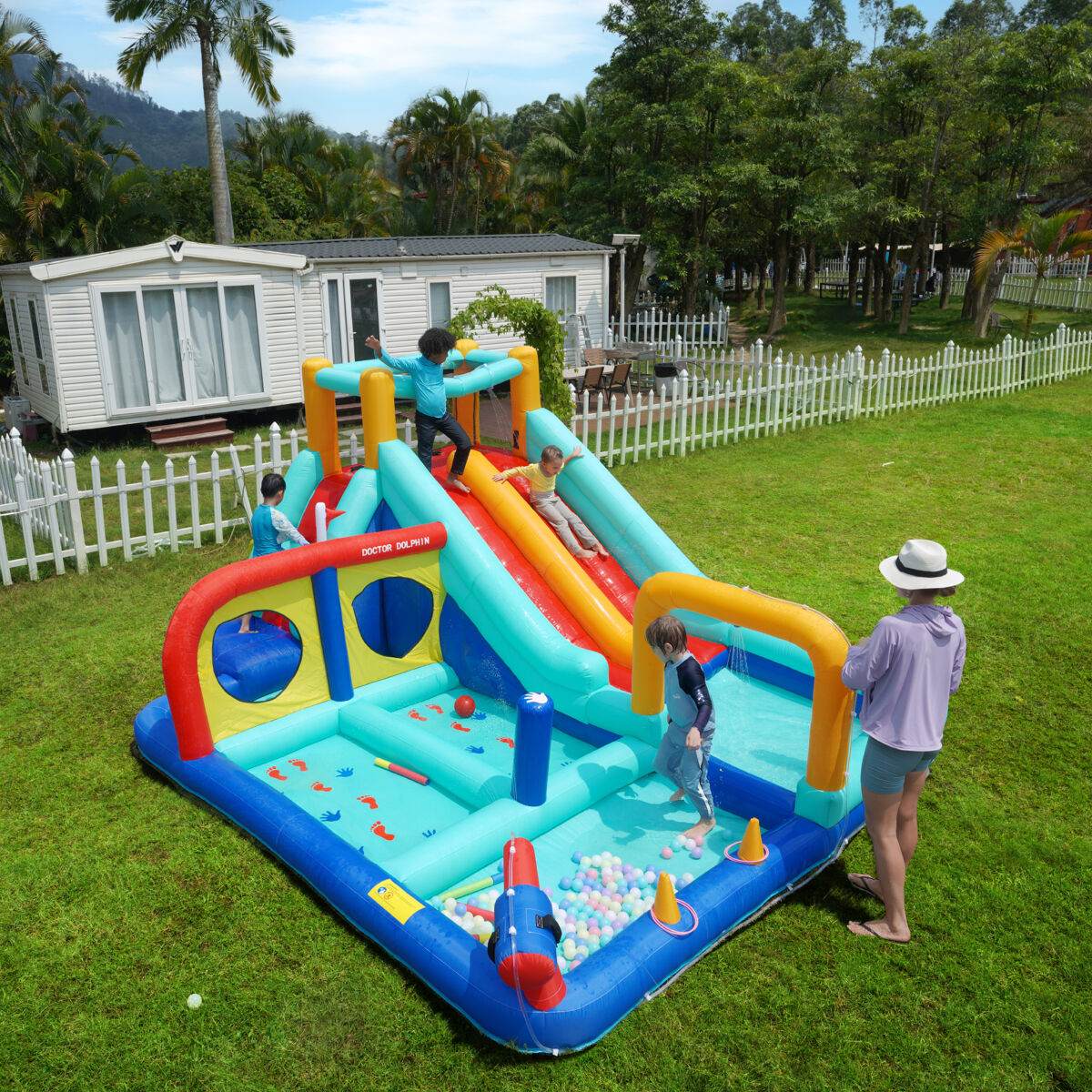 Adequado para uso seco e húmido – Ideal para todas as estações: No verão, pode ser transformado num refrescante parque aquático adicionando água e, no inverno, pode ser usado como um pula-pula comum – divertido durante todo o ano!