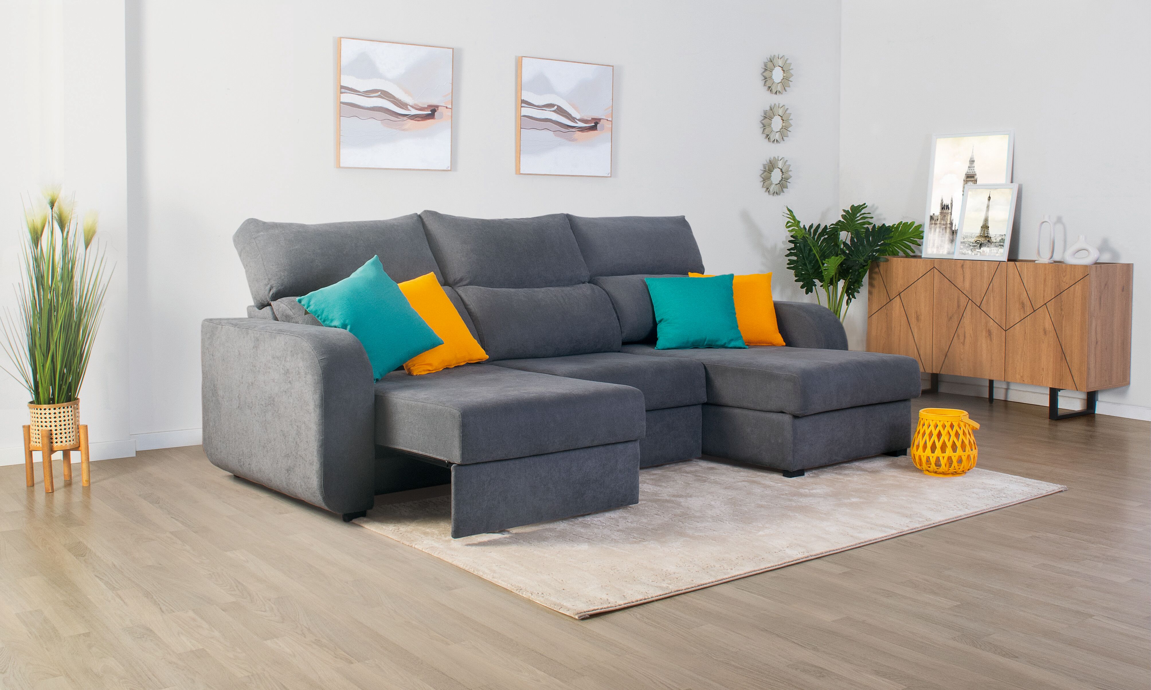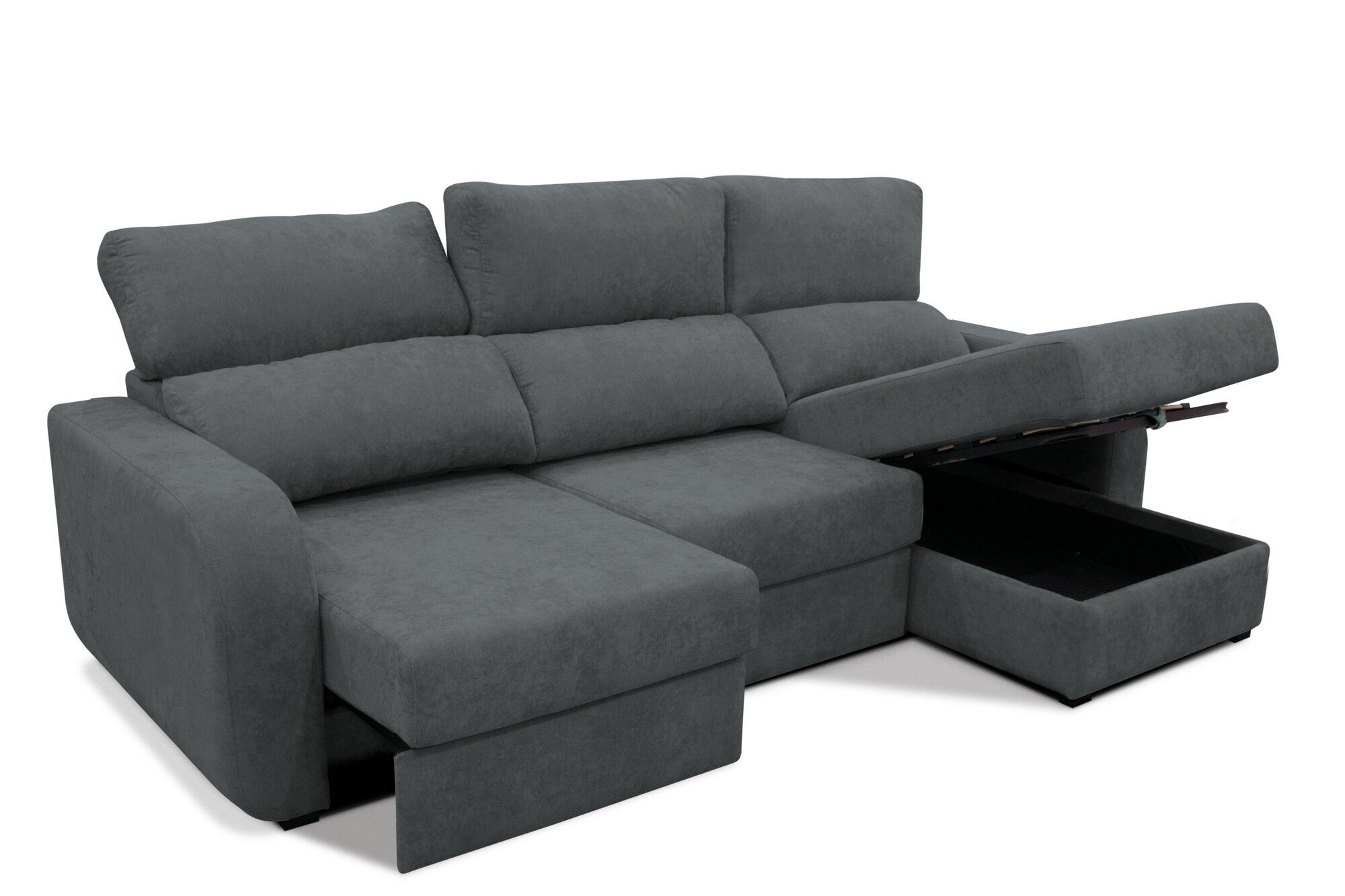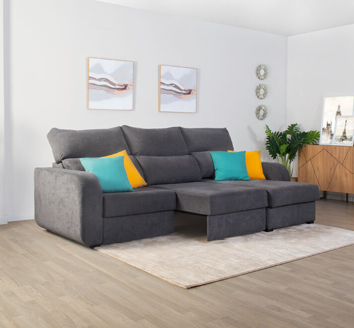 Encontre o máximo conforto com a chaise longue APRIL que possui materiais de alta qualidade. Obtenha o máximo relaxamento com o seu elegante revestimento em tecido. Esta chaise pode reclinar-se e os assentos deslizam para lhe oferecer mais conforto. Também se pode converter numa cama com zona de arrumação. Não perca esta oportunidade para desfrutar daquilo que sempre desejou!Adquira o seu Chaise longue convertível em cama tecido APRIL lado dereito cor verde na Conforama!!!