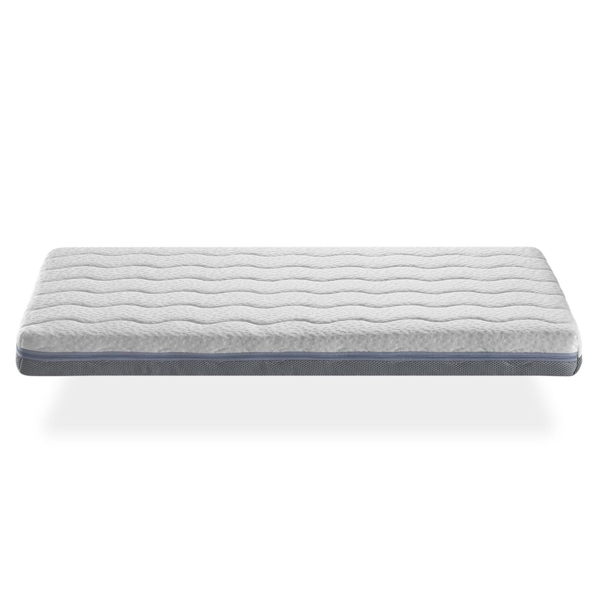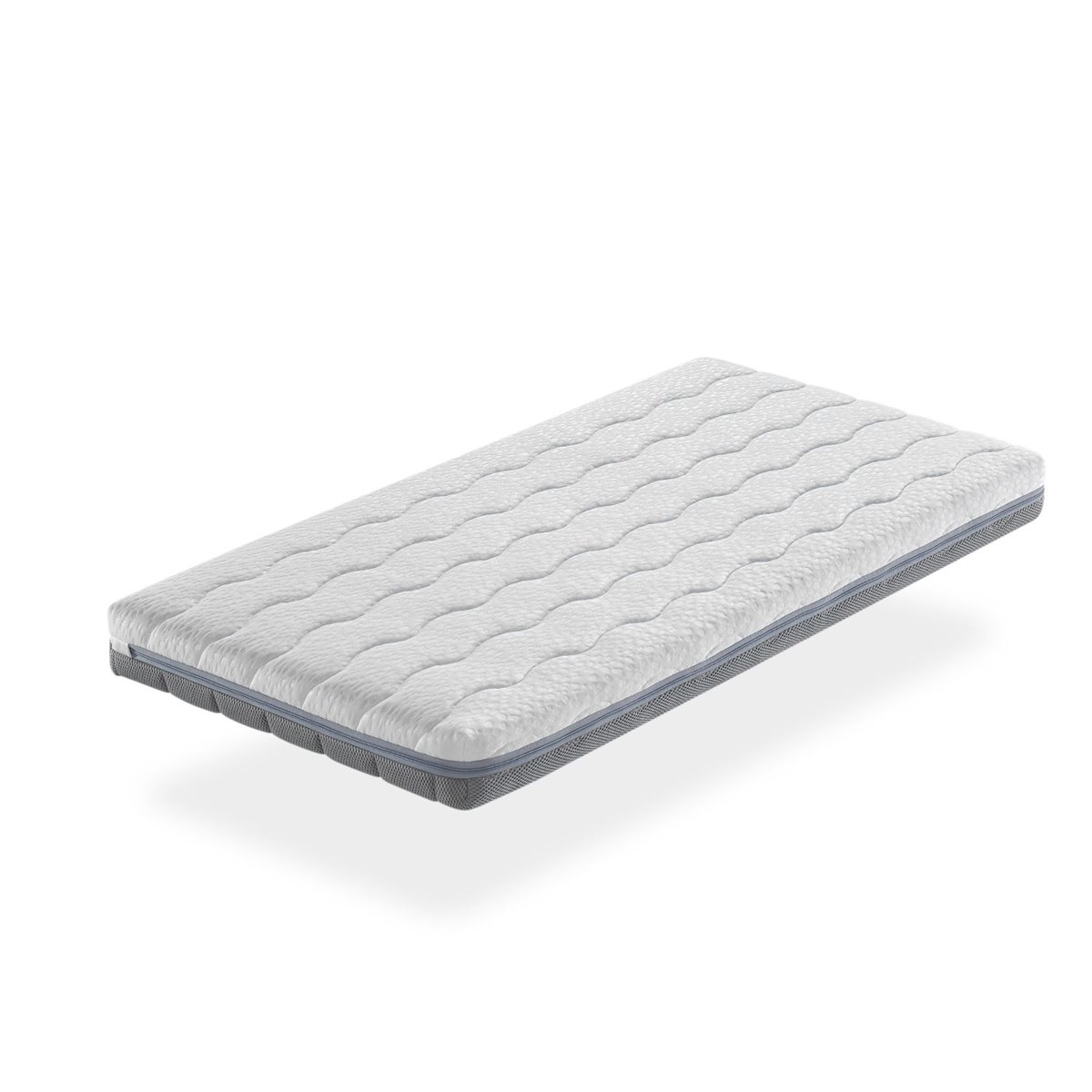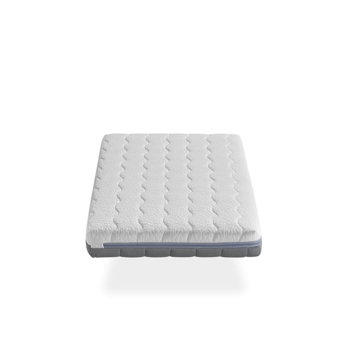 O núcleo é composto de espuma de memória em ambos os lados do colchão e espuma de alta densidade perfurada para eliminar o calor e a umidade. O viscoelástico ajuda a adaptar o corpo do nosso bebé ao colchão e a aliviar os pontos de pressão durante o sono. Graças à espuma perfurada, é possível criar canais de ventilação para evitar a formação de bolsas de CO2 e antiafogamento.