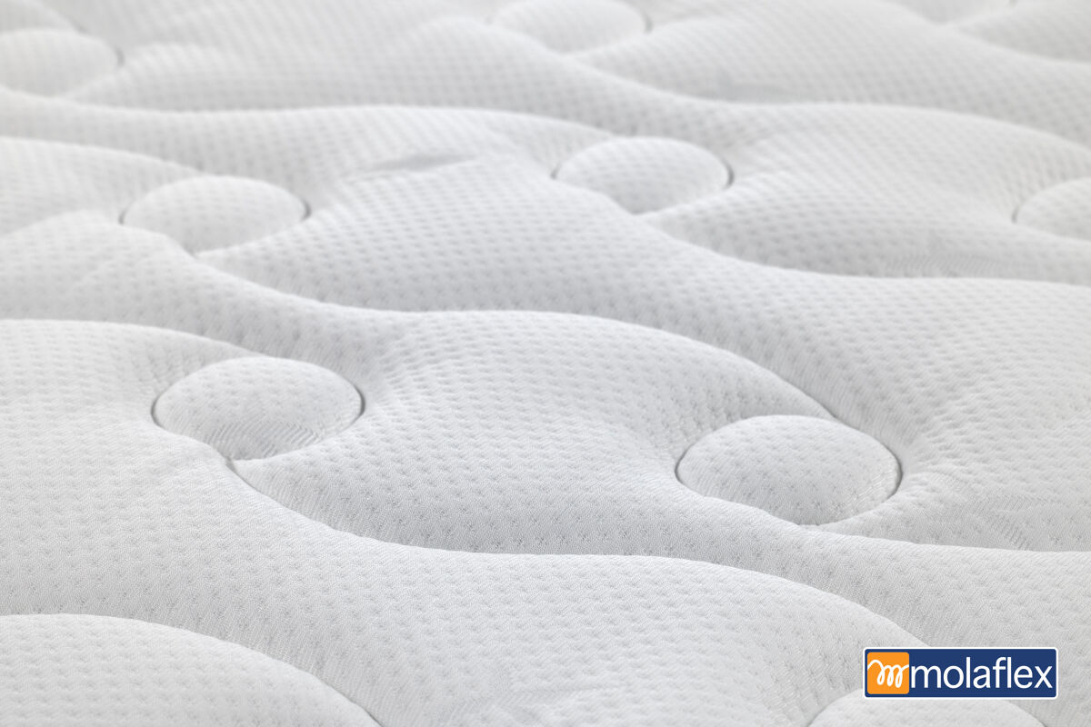 Conjunto de molas duplas de fio contínuo com forma helicoidal cruzadas no interior, que garantem o comportamento excelente do colchão na adaptação ao corpo uma vez que alter a sua firmeza e suporte de acordo com a pressão recebida.