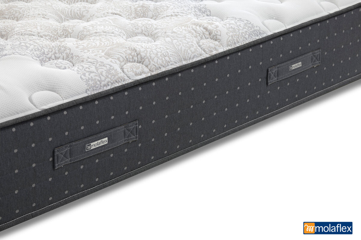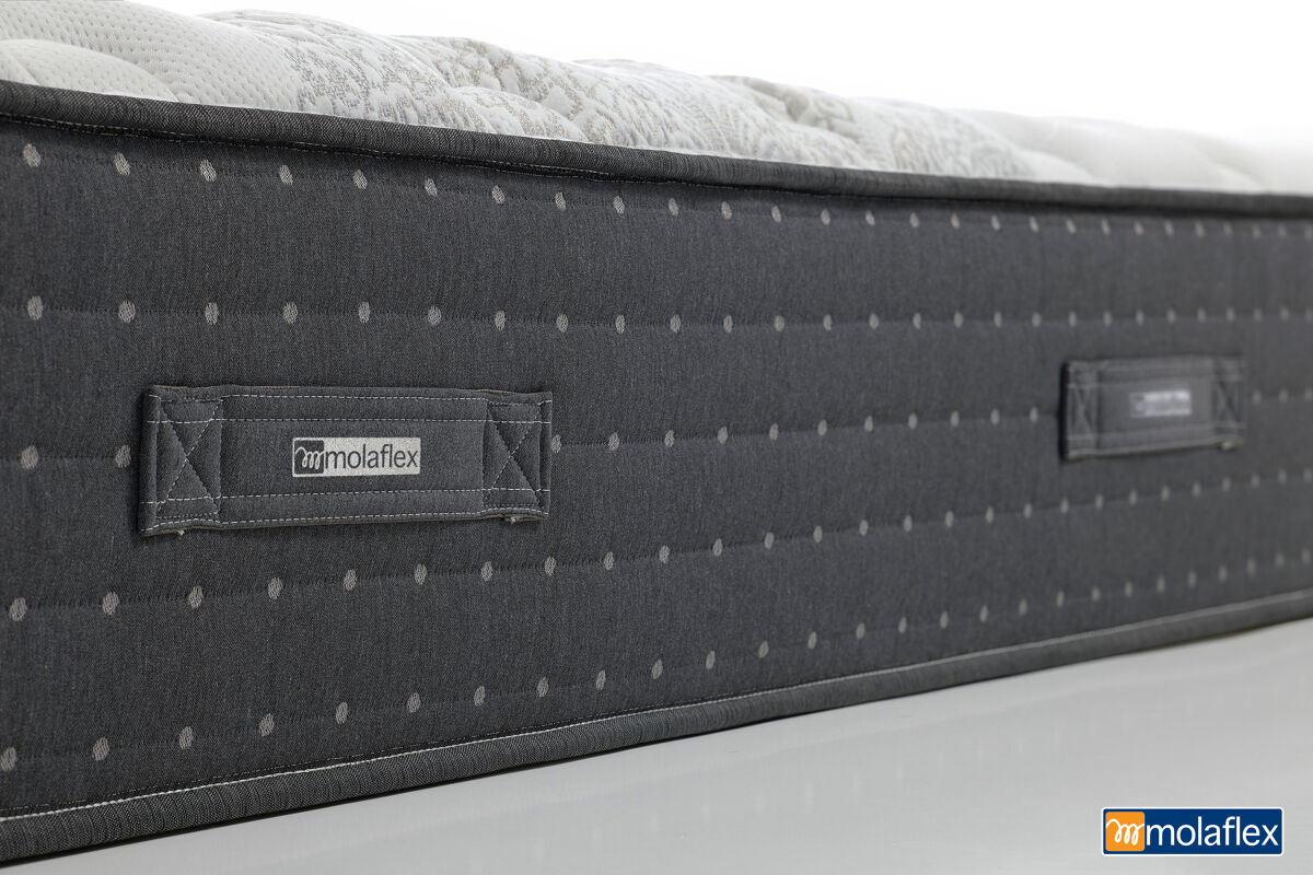 Construção do colchão que lhe proporciona uma estética diferencial, assim como uma camada extra de conforto acoplada que se traduz numa maior amortização do peso ao deitar e maior conforto e adaptabilidade.