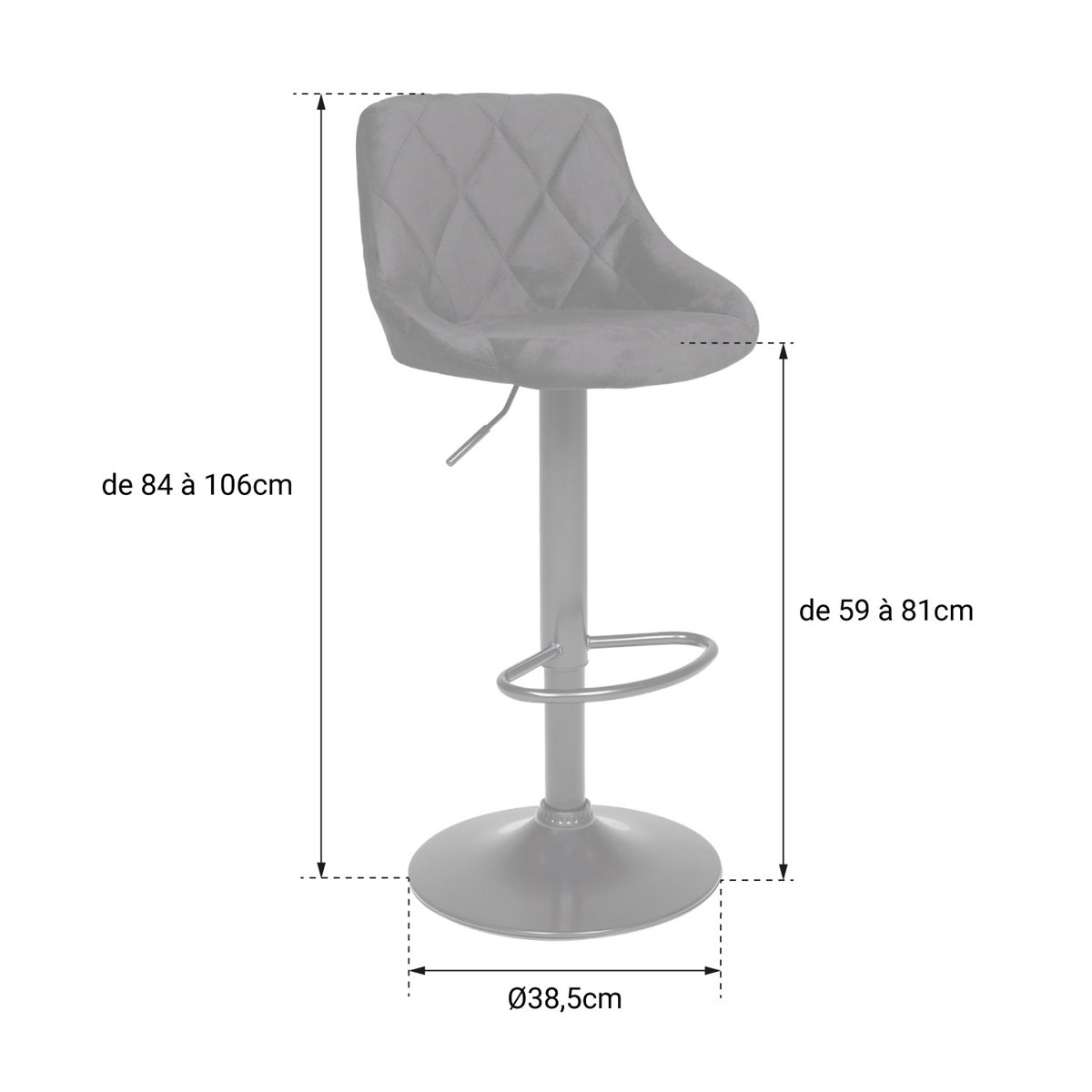 O banco de bar ROBIN é uma adição elegante à sua cozinha ou sala de jantar. Com os seus estofos em veludo de pelúcia, a bonita costura em forma de diamante e a moderna base em metal preto, realça a decoração da divisão à primeira vista. O seu assento é almofadado com espuma e possui um encosto que aumenta o seu conforto em todos os momentos do dia. Desfrute do assento giratório de 360 graus e do apoio para os pés para maior apoio. Este banco alto também é regulável em altura, pelo que pode adaptá-lo ao seu bar, mesa alta ou ilha de cozinha como desejar.