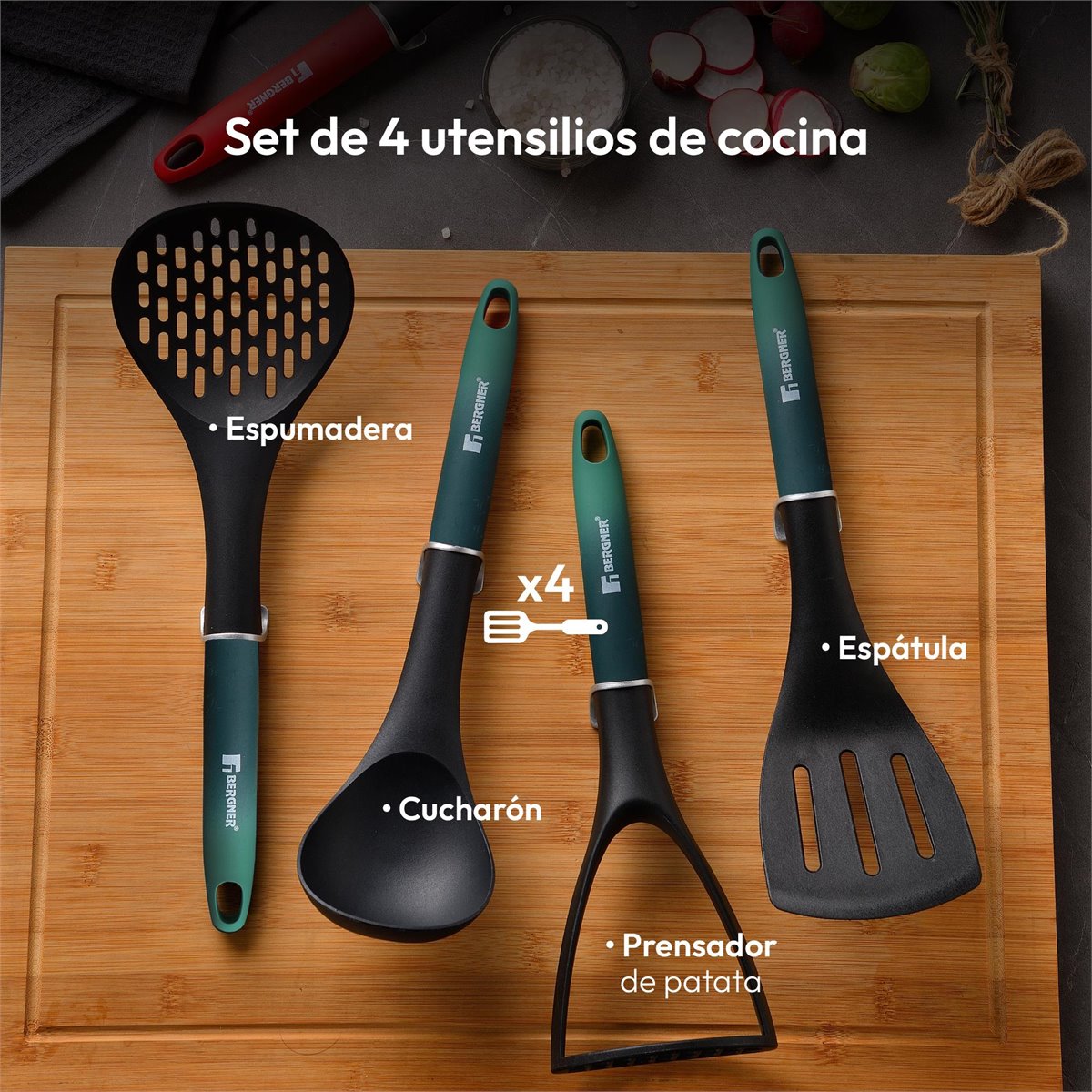 Conjunto Classique: inclui panelas antiaderentes de 20 e 26 cm de diâmetro, além de espátula, escumadeira, concha e espremedor de batatas,