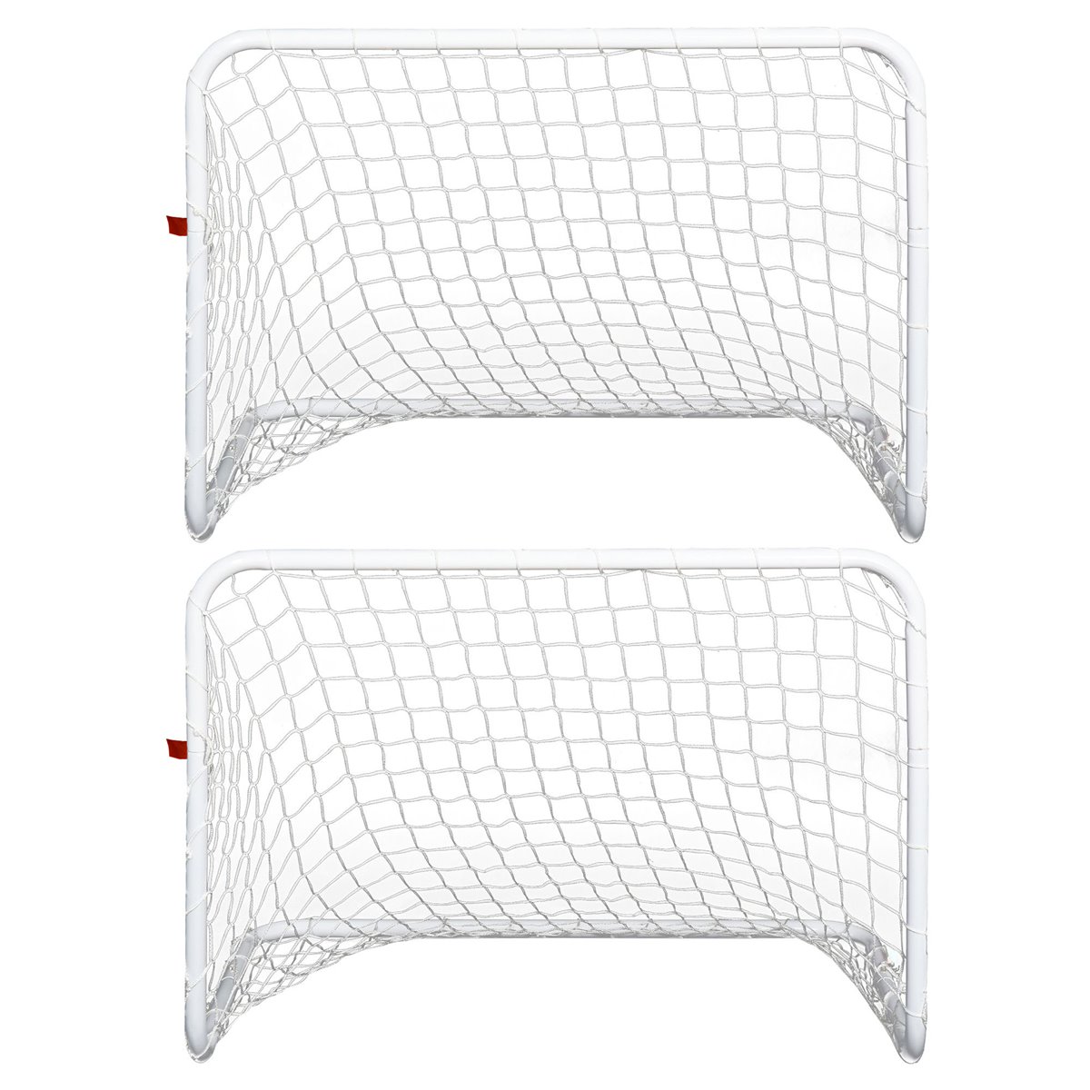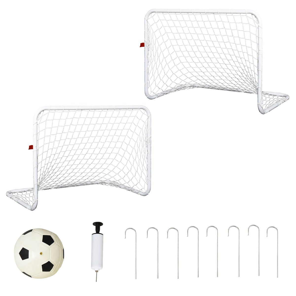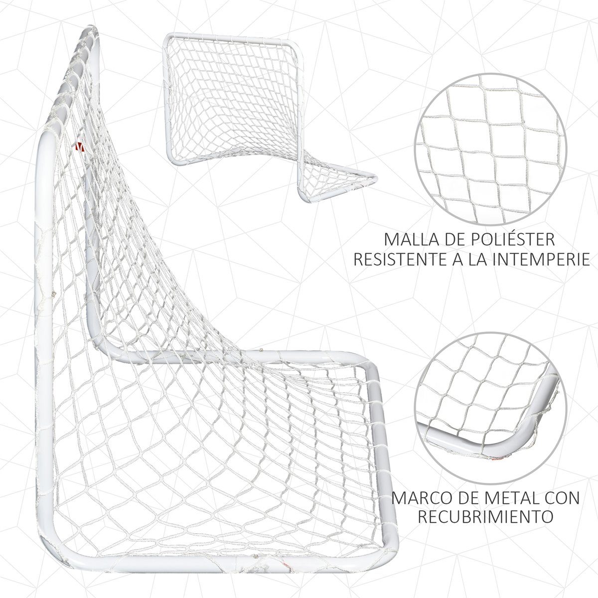 O jogo que esta mini baliza de futebol HOMCOM pode oferecer parece impossível! Adequado para jovens e idosos, iniciantes e especialistas na bola, para jogar sozinho com amigos, para desfrutar de pais e filhos, etc. Com esse objetivo, você pode aprimorar suas habilidades de futebol, como capacidade de tiro e velocidade de reação. Por meio do futebol, você também pode ajudar as crianças a desenvolver a consciência da equipe e a melhorar sua qualidade física. Além disso, não apenas um objetivo está chegando, mas dois. Para fazer minijogos, pontaria, circuitos ... Não hesite, leve este conjunto de 2 golos de futebol para casa e comece a atirar! Características: - Presente perfeito para jogadores de futebol juvenil e crianças pequenas - Estrutura de metal com revestimento em pó para uso de longo prazo - Rede resistente em malha de poliéster para redução de impactos - 8 pinos em forma de J (4 para cada meta) são usados para fixá-los - Faixa vermelha no topo da rede para definir rapidamente a direção - Conjunto de 2 gols com bola de futebol de 23 cm de diâmetro e inflador Especificaciones: - Cor branca - Material: Metal (Q195), Poliéster - Medidas totais: 78x46x56 cm (CxLxA) - Medidas da malha da rede: 4,5x4,5 cm - Referência: A62-025