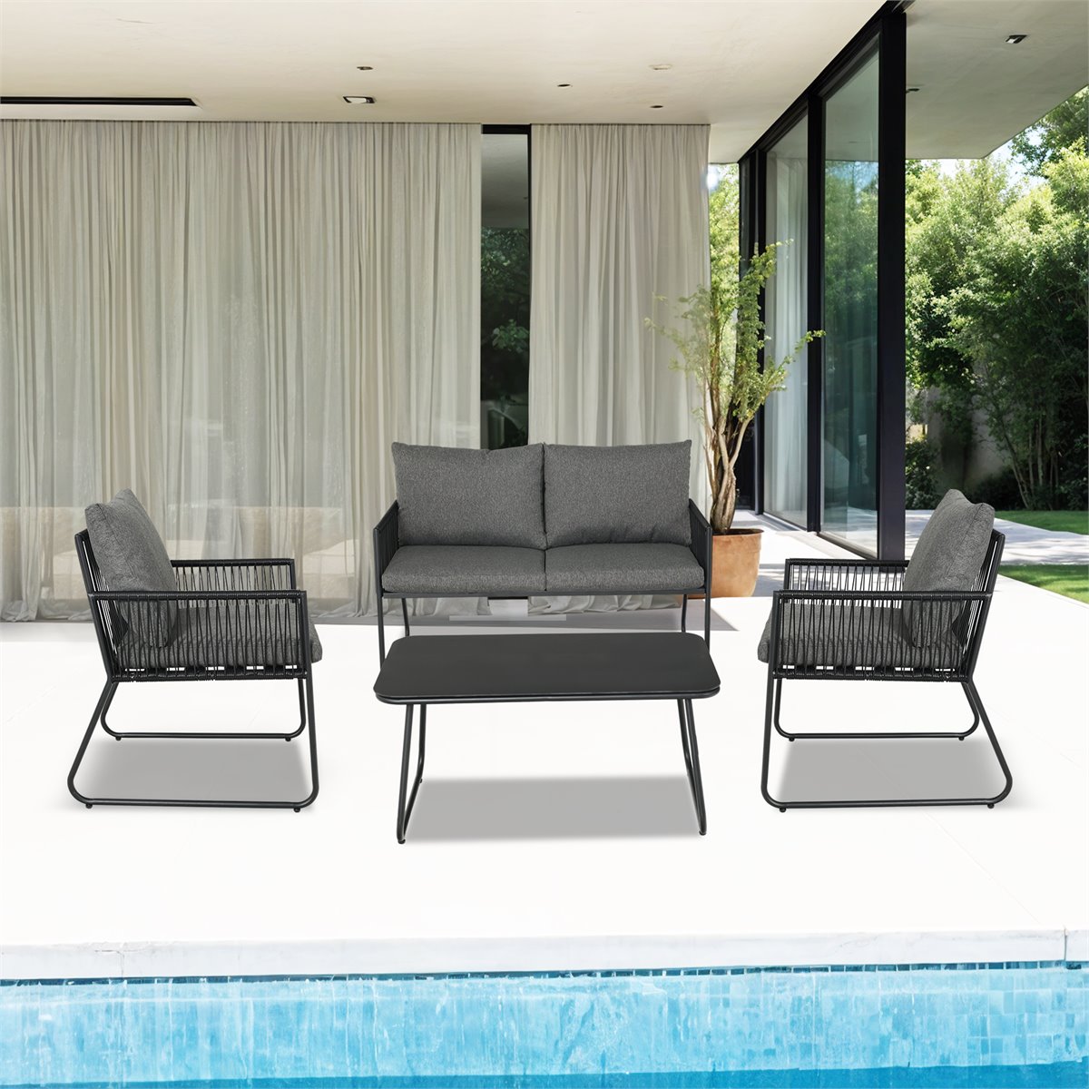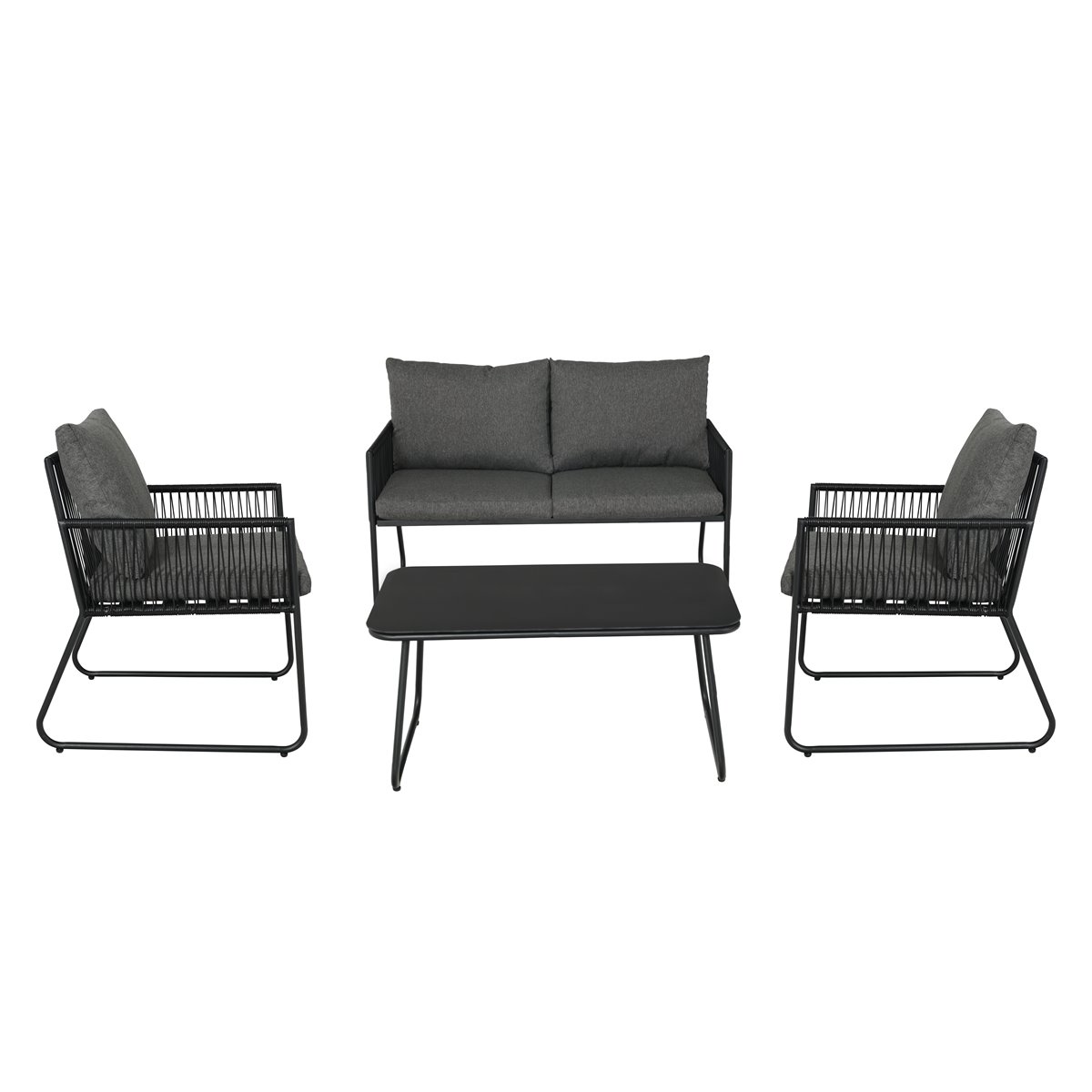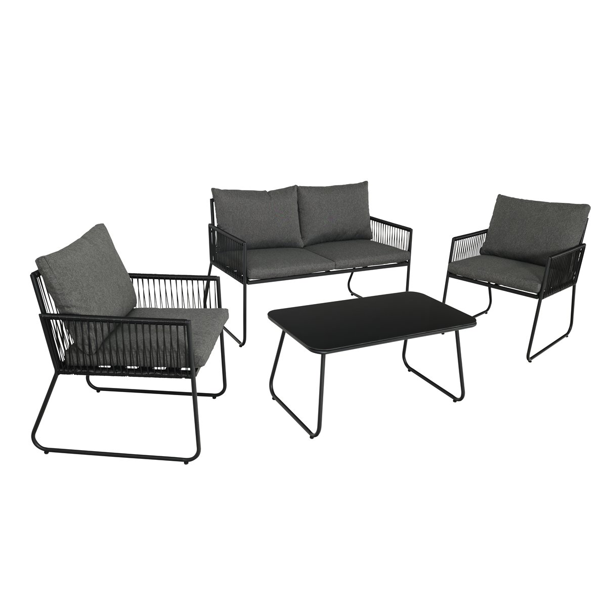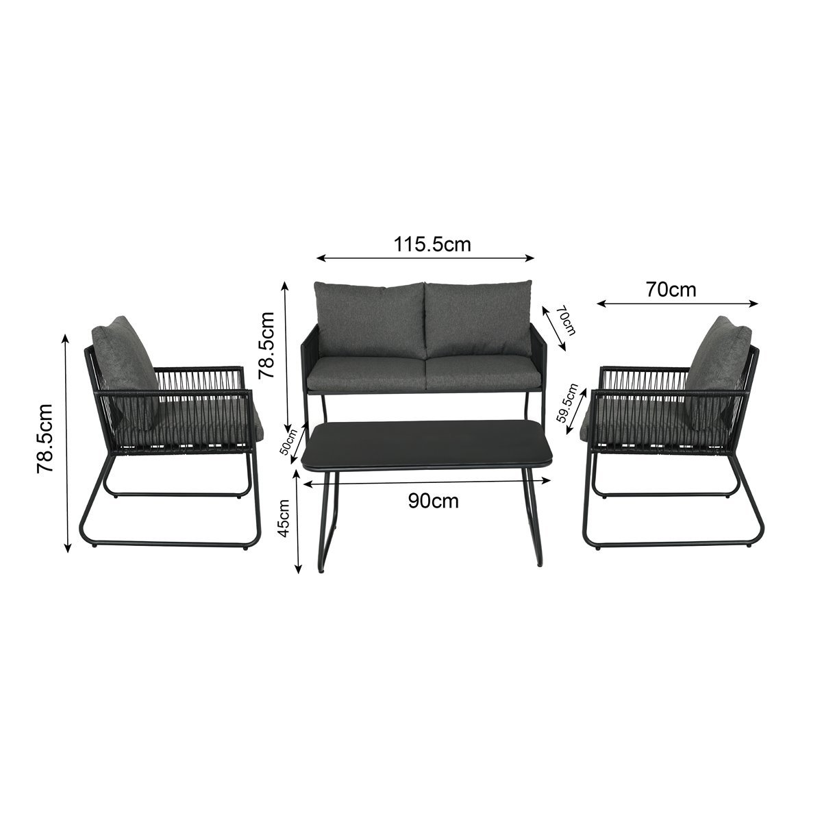 Transforme o seu espaço com o conjunto de móveis KELLY, a escolha perfeita para quem procura estilo e conforto. Este elegante conjunto inclui um sofá de 2 lugares, duas poltronas e uma mesa de centro em cinza escuro. Estrutura em aço. Almofada em poliéster. A mesa de centro, com o seu tampo de vidro temperado e o subtil design com estampado de seda, cria um efeito moderno e funcional. Não espere mais para renovar a sua sala de estar com o conjunto KELLY. Compre agora e transforme a sua casa!