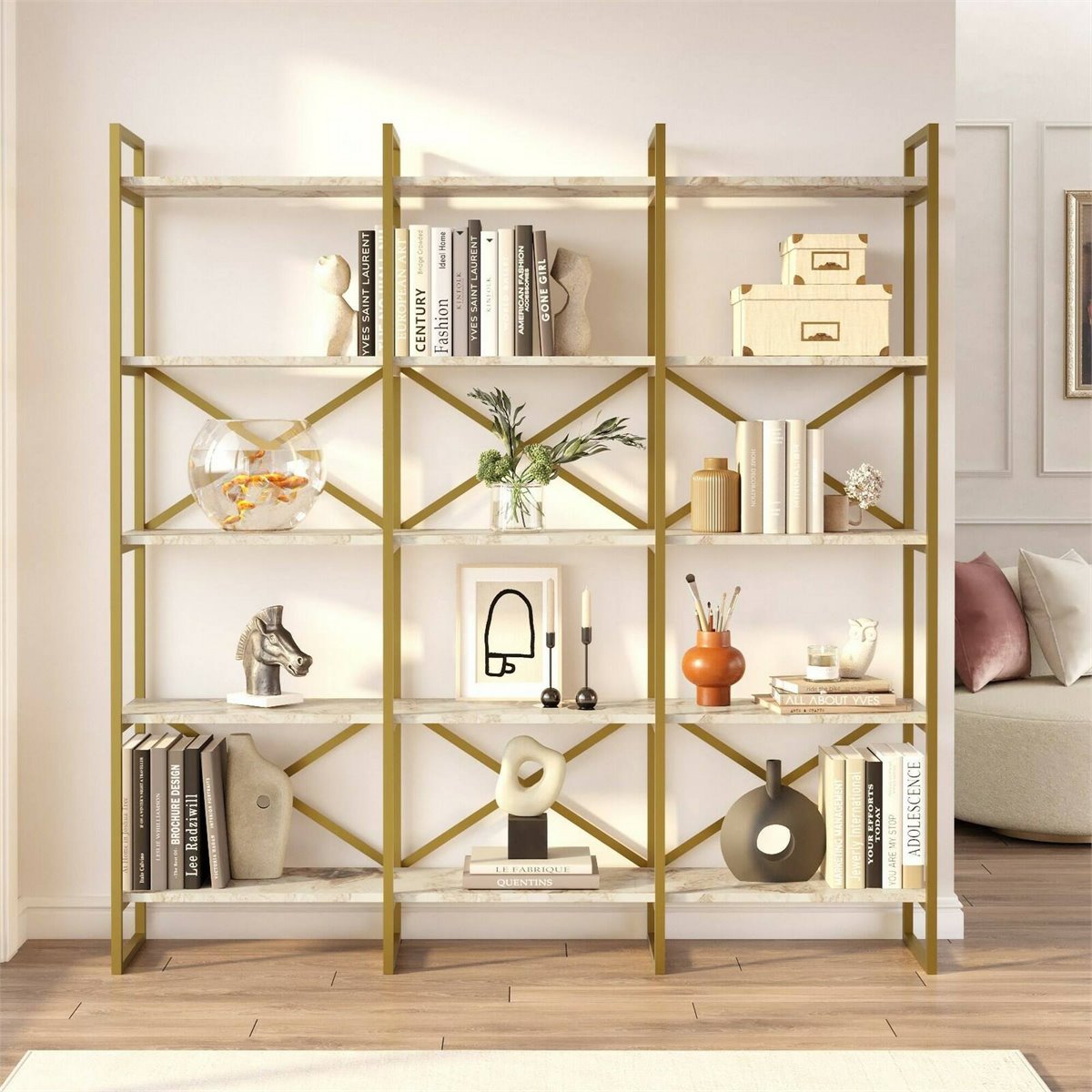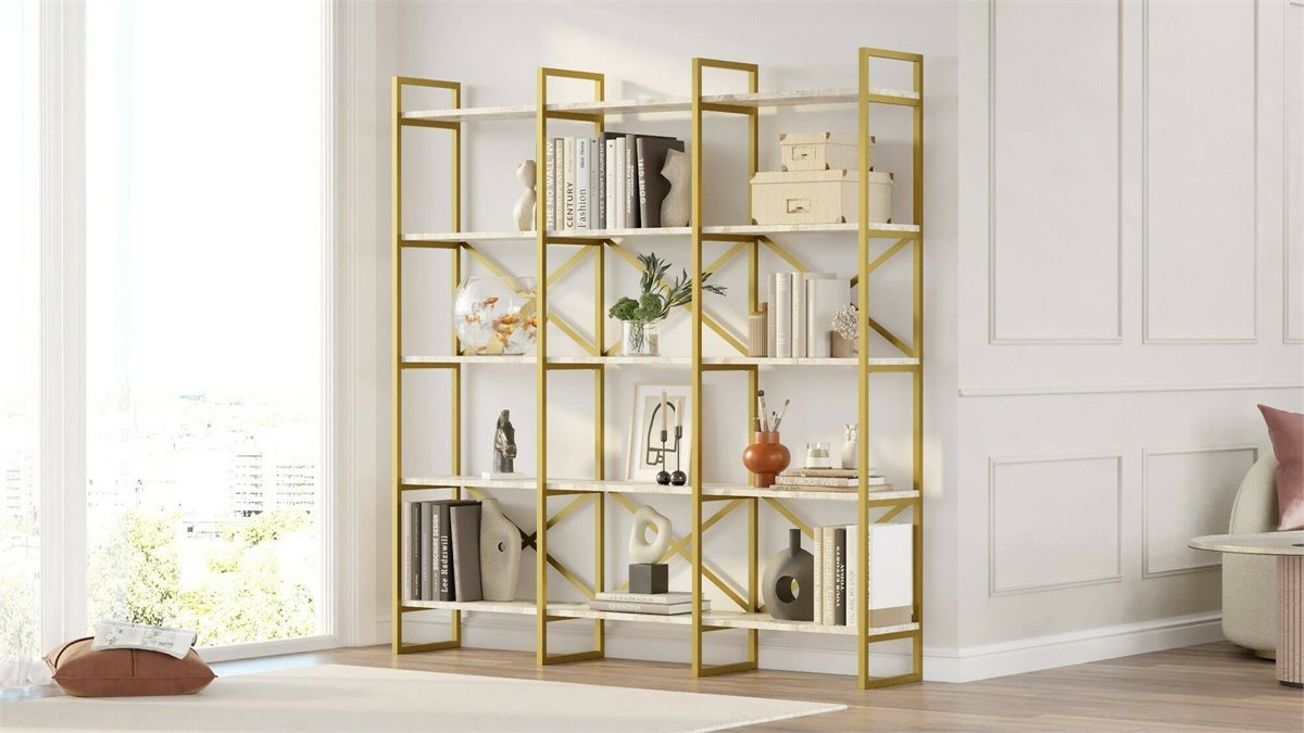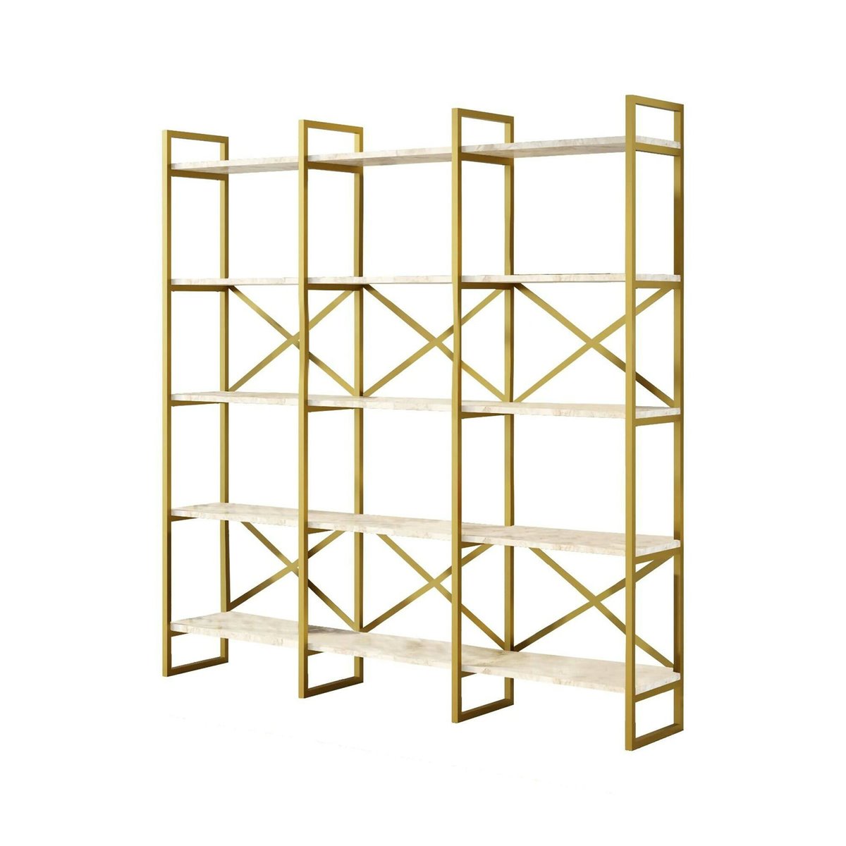 ESTANTE - Estante de escritório, Estante, Biblioteca, 170x30h175 cm, Branco e Dourado.