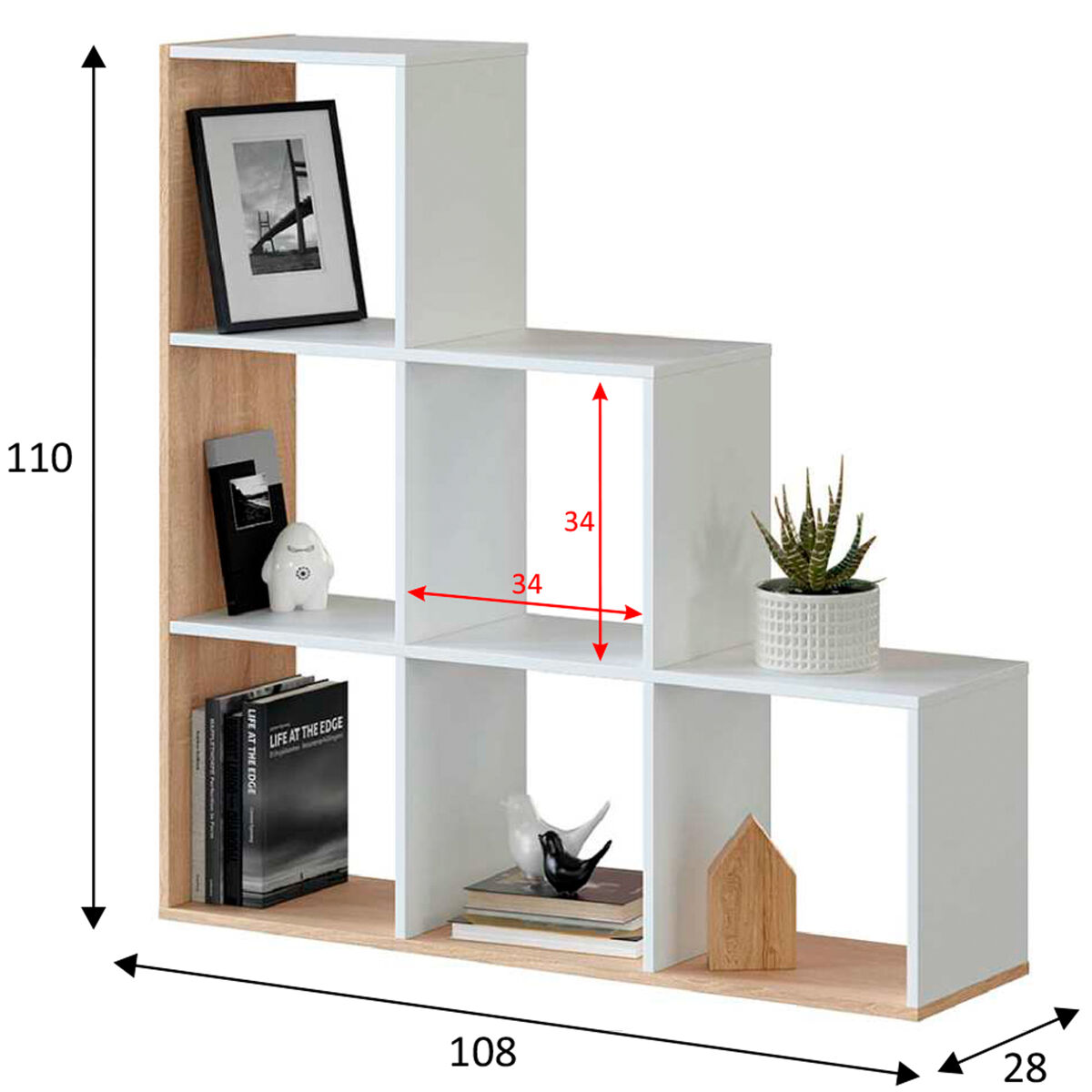 - Ideal para qualquer canto da casa, dando acessibilidade a objectos e livros para uso diário e decoração. Como descreve a tendência minimalista, esta estante é decorativa e funcional, trazendo essencialidade ao nosso quarto.