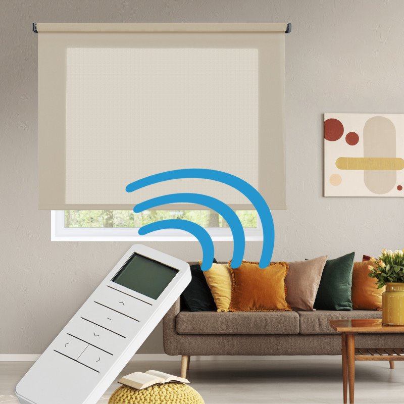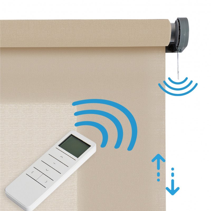 ESTORE MOTORIZADO DECO TRANSLÚCIDO. Estores de enrolar com tecido translúcido 100% poliéster. Permite a passagem da luz de forma atenuada, proporcionando privacidade tanto de dia como de noite. É um estore com um aspeto têxtil, elegante e moderno. O contrapeso é visível, dando um toque a mais de design à persiana. É um estore automático que inclui um motor e um comando multicanal, pelo que pode acionar até 15 estores ao mesmo tempo! Pode ser colocado tanto no teto como na parede e pode limpar o tecido com um pano ligeiramente húmido.