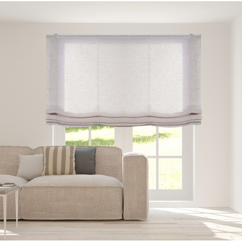 Estore de tecido dobrável, é um estore sem varetas com tecido translúcido. Disponível numa altura de 175cm (para janelas) e 250cm (para portas) e em diferentes cores. Tecido tipo linho, suave e leve. Composição: 100% poliéster em branco, 85% poliéster - 15% linho em bege. É um estore pacchetto de qualidade que dará um toque de aconchego a cozinhas, salas de estar, salas de jantar, quartos. Além disso, pode instalá-la facilmente na parede ou no tecto. O mecanismo do estore pachetto é accionado por corrente. Inclui um sistema anti-bloqueio e de segurança para crianças. Manutenção fácil: o tecido branco pode ser lavado na máquina em água fria e passado a ferro com cuidado. O bege só pode ser lavado a seco.