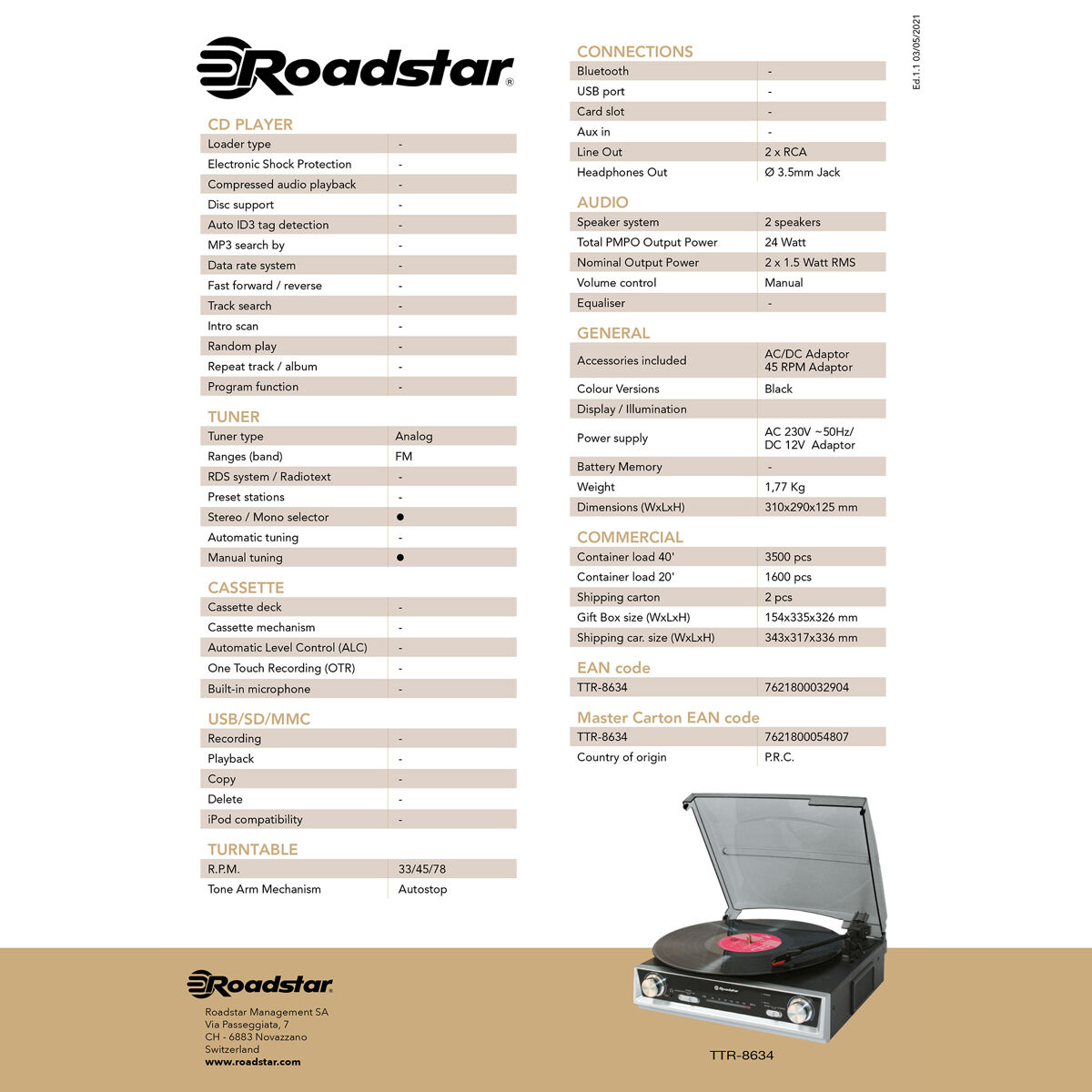 - Design Elegante: A mesa giratória e o rádio com o seu design simples e elegante com caixa de madeira preta com apliques de prata, apresenta tecnologia avançada. É ideal tanto para casas clássicas como modernas, para dar um toque diferente.