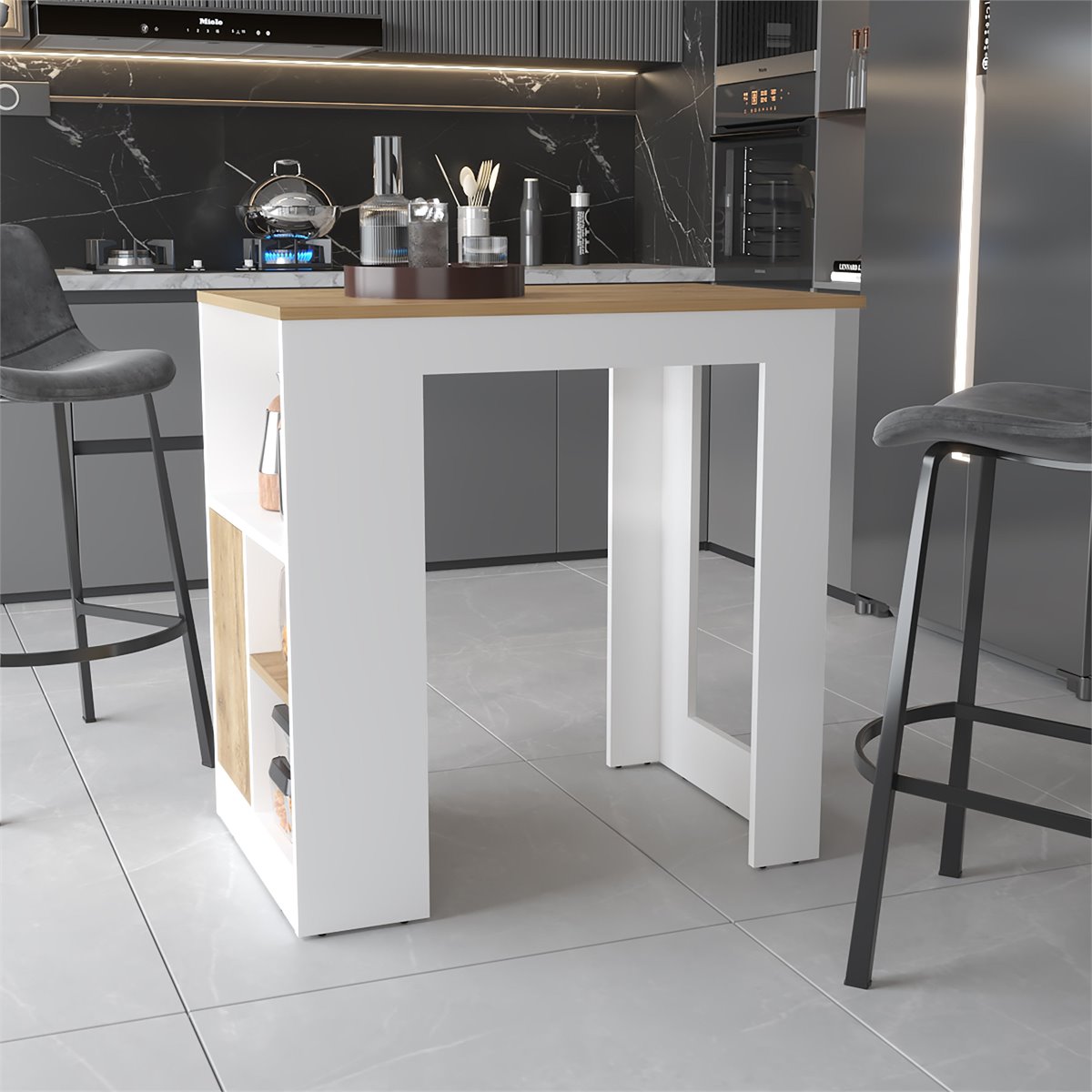 Eleve a sua experiência na cozinha com a ilha de cozinha Oviedo, onde a forma encontra a função de uma forma deliciosamente agradável. A ilha de cozinha Oviedo é uma peça central versátil e elegante para aventuras culinárias. Esta ilha multifuncional apresenta uma superfície espaçosa com 92 cm de largura x 59 cm de profundidade, perfeita para refeições, preparação de alimentos ou entretenimento de convidados. Com um impressionante acabamento em branco e madeira de macadâmia, a ilha de cozinha Oviedo inclui um armário de porta única com 26,6 cm de largura x 45,1 cm de altura para os seus utensílios de cozinha, com um sistema exclusivo de abertura por pressão, e três prateleiras de arrumação laterais para manter os seus artigos essenciais organizados e facilmente acessíveis.