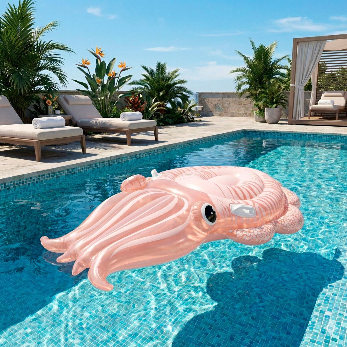 Prepare-se para nadar entre tentáculos com esta divertida boia em formato de choco! Com um estilo marinho realista e medindo 198x117x30 cm, esta boia inflável, recomendada para maiores de 14 anos, foi projetada para relaxar na água com estilo e conforto. Tem capacidade para uma pessoa e suporta um peso máximo de 100 kg. Inclui também duas alças resistentes para maior estabilidade. Um kit de reparo está incluído caso alguma aventura aquática tome um rumo inesperado. Aproveite o verão na piscina com esta boia inflável de uma forma única e original.