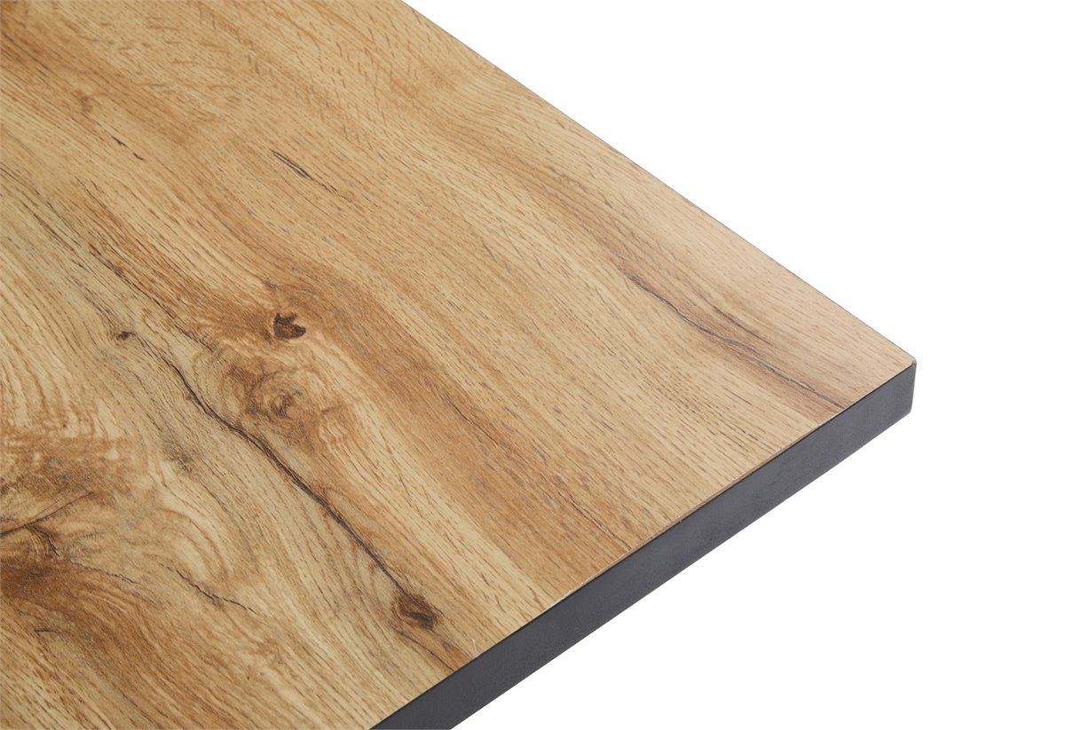 Este conjunto de jantar oferece uma combinação harmoniosa entre o visual acolhedor do tampo efeito madeira e o conforto das cadeiras em tecido castanho estilo camurça. A mesa, produzida em MDF de alta qualidade, apresenta um padrão de veios de madeira elegante e dimensões generosas (138,5 × 80 cm) para acomodar confortavelmente de 4 a 6 pessoas. O seu design de base único e estrutura robusta garantem estabilidade e um toque moderno que valoriza qualquer sala de jantar ou cozinha. O tampo suporta até 60 kg e mantém uma aparência sofisticada com o charme da madeira natural.