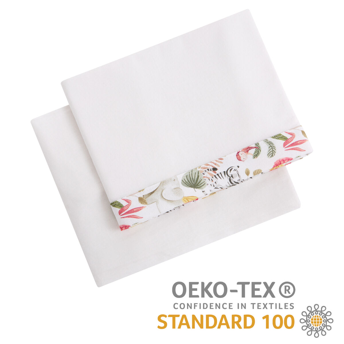 Lençol de berço 60x120 cm em algodão com certificado Oeko-Tex. Conjunto de lençol de berço, lençol adaptado e lençol de cima (Safari Jungle)