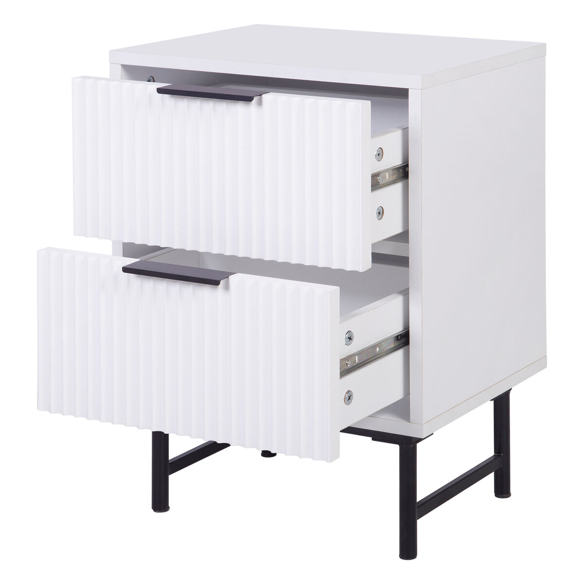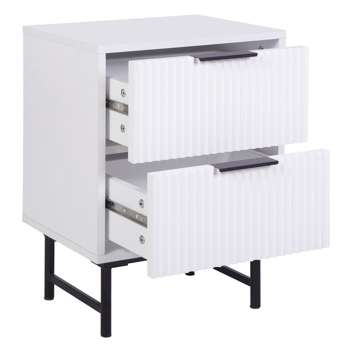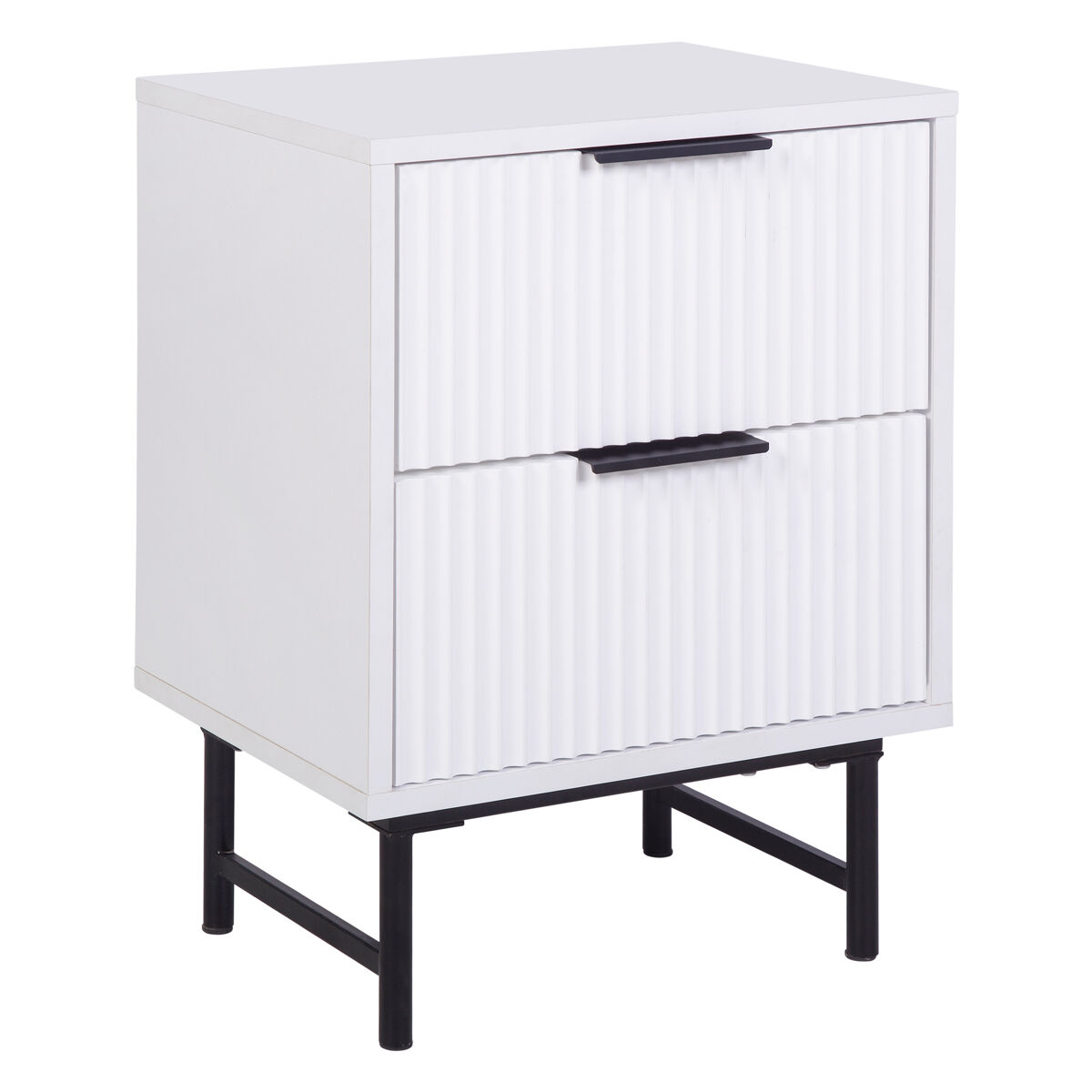 Descubra a mesa de cabeceira YLVA com 2 gavetas, branca, perfeita para complementar qualquer quarto com um toque de elegância e simplicidade. Fabricada com materiais de alta qualidade, oferece durabilidade e design prático que se adapta a qualquer tipo de espaço. As suas gavetas oferecem um amplo armazenamento para os seus objetos. O acabamento em branco puro confere luminosidade e amplitude visual, tornando esta mesa numa peça de mobiliário imprescindível no seu quarto.