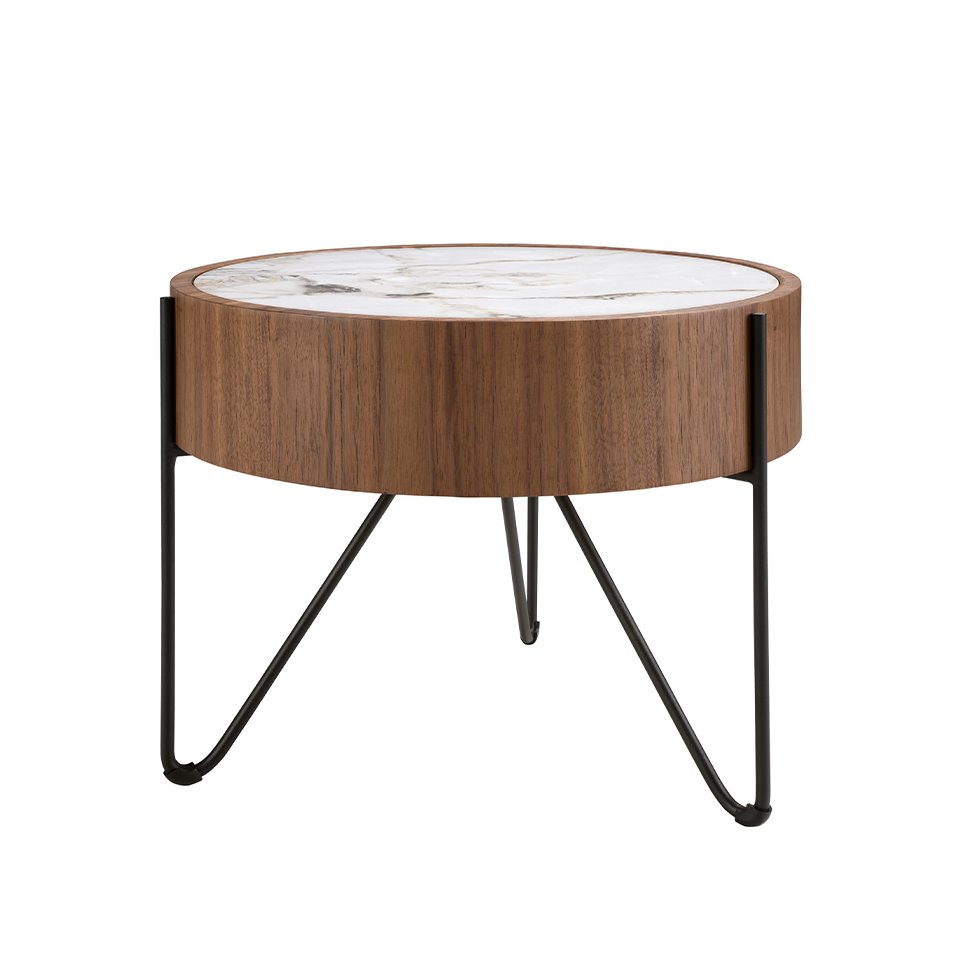 Mesa de canto redonda em mármore porcelânico, nogueira e aço preto modelo 2139 Angel Cerdá S.L.