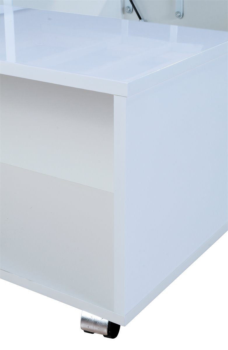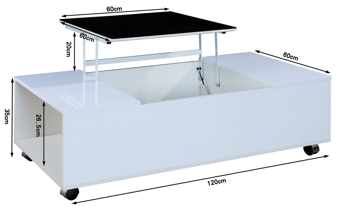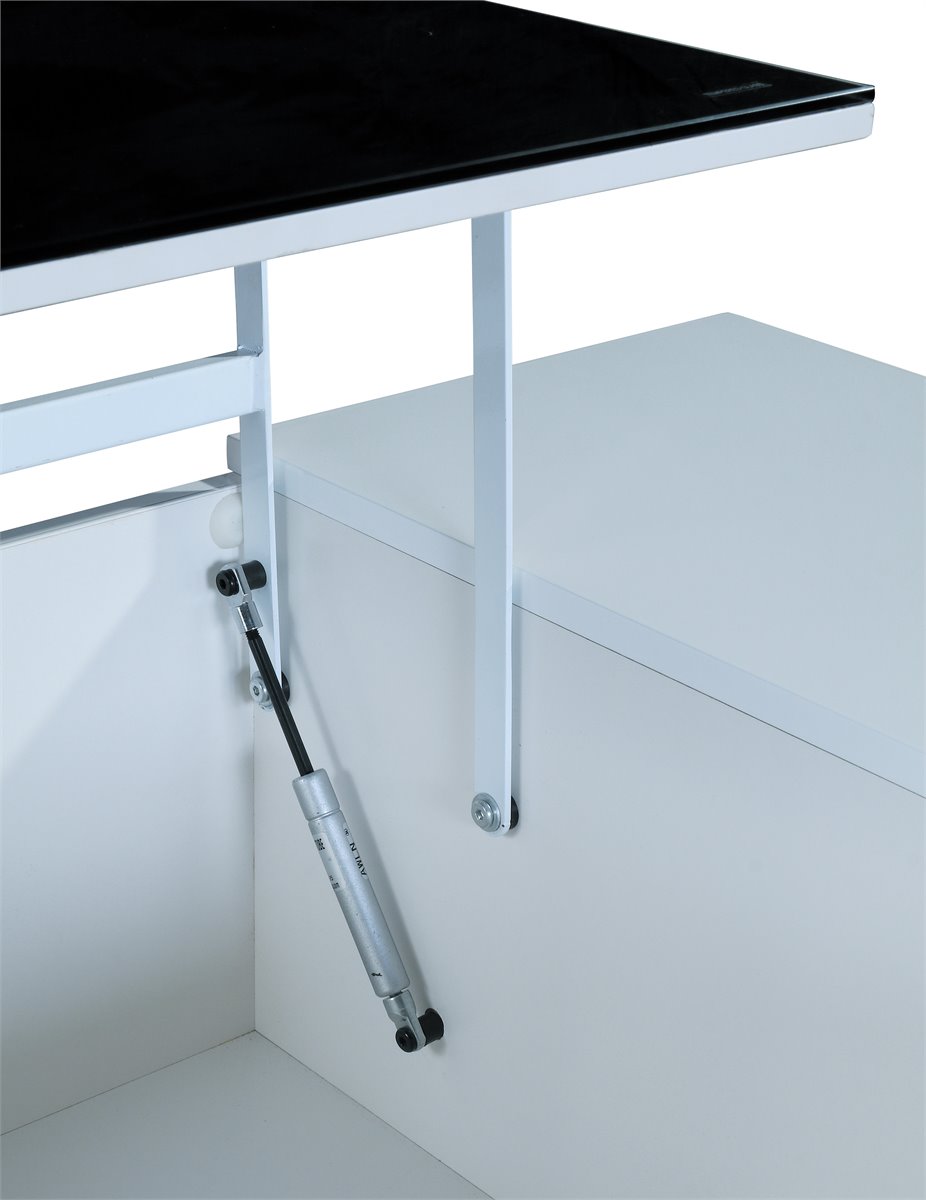 A mesa de centro elevável SAM é uma peça moderna e funcional, que acrescenta um toque de elegância a qualquer tipo de sala. Com estrutura robusta em MDF com 15mm de espessura, revestida em branco brilhante, esta mesa oferece uma estética clean e contemporânea. A sua superfície de vidro temperado preto, com 5 mm de espessura, complementa perfeitamente o design agregando um contraste sofisticado e resistente. Além disso, o seu mecanismo de elevação permite ajustar a altura para se adaptar às diferentes necessidades, seja para trabalhar, comer ou relaxar. Com medidas de 120 cm de largura, 35/56 cm de altura regulável e 60 cm de profundidade, esta mesa é ideal para salas de tamanho médio ou pequeno. Além disso, o seu design inclui uma prática zona de armazenamento interno, mantendo a sua casa organizada e muito elegante.