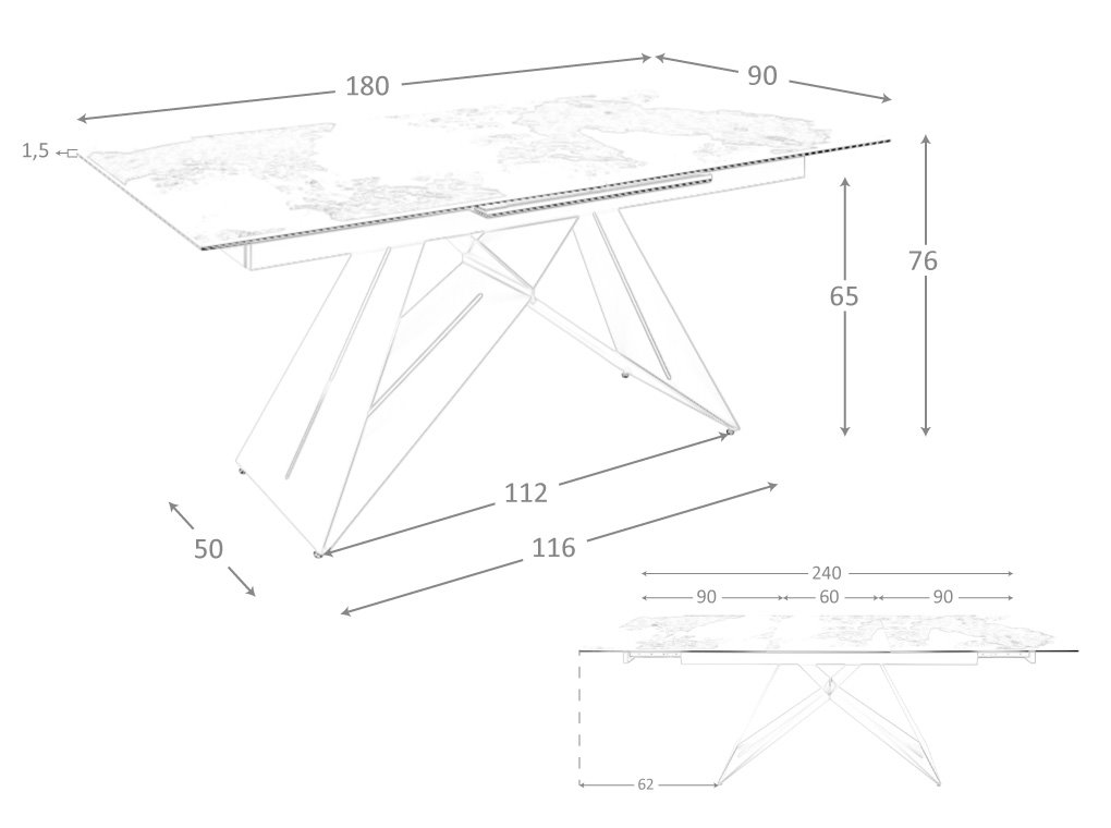 Esta mesa de jantar apresenta 1 extensível de 60 cm., e pode ser alargada por 180 a 240 cm.