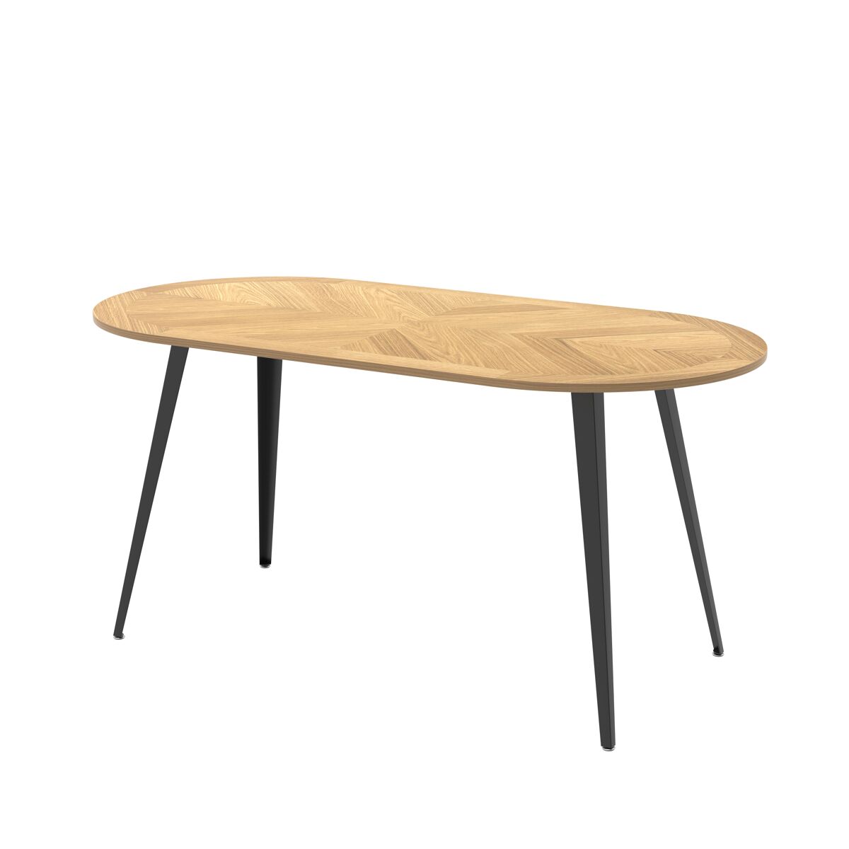 A mesa de jantar oval fixa KITTY é a escolha perfeita para quem procura aliar estilo e funcionalidade. O seu elegante painel em MDF, cor carvalho, com 18 mm de espessura, confere-lhe um acabamento sofisticado e resistente, ideal para complementar vários estilos decorativos. As pernas em metal preto acrescentam um toque moderno e contemporâneo, além de garantir uma base resistente e estável. Com 160 cm de largura, 76 cm de altura e 80 cm de profundidade, esta mesa é perfeita para criar um ambiente acolhedor na sua sala de jantar, oferecendo espaço suficiente para partilhar refeições com a família ou os amigos. A mesa KITTY associa design e durabilidade na perfeição, sendo o centro das atenções em qualquer tipo de ambiente.