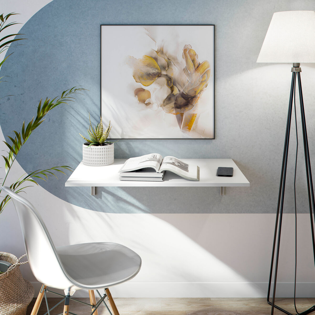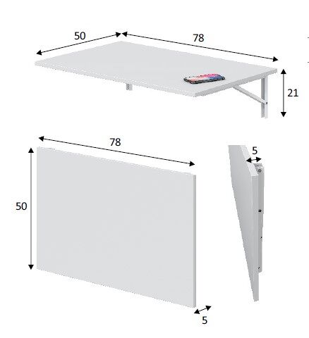 A mesa de parede rebatível ARIET é a solução perfeita para todos os tipos de espaços. Foi concebida para ser facilmente instalada à altura desejada, permitindo maximizar o conforto em qualquer divisão da sua casa, ocupando o mínimo de espaço possível. Fácil manutenção. É fabricada com tampo em painel de partículas de 15 mm, melamina branca e um suporte de aço pintado. Os botões de pressão permitem dobrá-la, e, ao acionar o mecanismo de bloqueio, impede que os suportes se dobrem acidentalmente. Medidas: 78x1,5x50 cm.