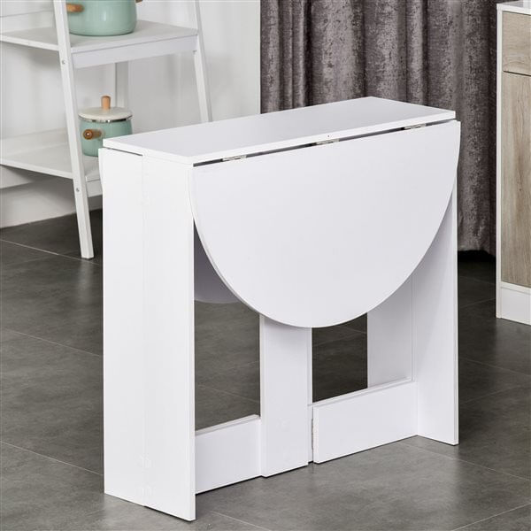 Procura uma mesa lateral ou que não ocupe muito espaço? Esta mesa dobrável HOMCOM possui duas asas que você pode abrir ou fechar de acordo com suas necessidades. Com espaço para 1-2 pessoas, é a solução ideal para pequenas cozinhas, salas de jantar ou qualquer outro canto ou sala com espaço limitado. Se tem uma pequena sala de jantar e não quer uma mesa fixa que ocupe espaço desnecessário, esta é a mesa de que precisa. Características: - Mesa dobrável de formato compacto que economiza espaço, ideal para lugares em cantos e espaços limitados - Mesa modular, que pode ser utilizada sem nenhuma, com uma ou duas alas, com capacidade para 1-2 pessoas - As asas extensíveis são fixadas por travas - Mesa moderna e funcional que se adapta facilmente a qualquer decoração - Fabricado em madeira melamínica, resistente e fácil de limpar - Requer montagem Especificaciones: - Cor: Branco - Material: Melamina de madeira - Medidas totais: 104x76x73,7 cm (estendido) e 76x31x73,7 cm (dobrado):● Medidas das laterais: 76x38 cm - Medidas dos pés: 12,5x72 cm (móvel) e 14x72 cm (fixa)● Capacidade máxima de carga: 30 kg - Referência: 835-319 O pacote inclui: - ● 1x Mesa de jantar; ● 1x Manual de instruções