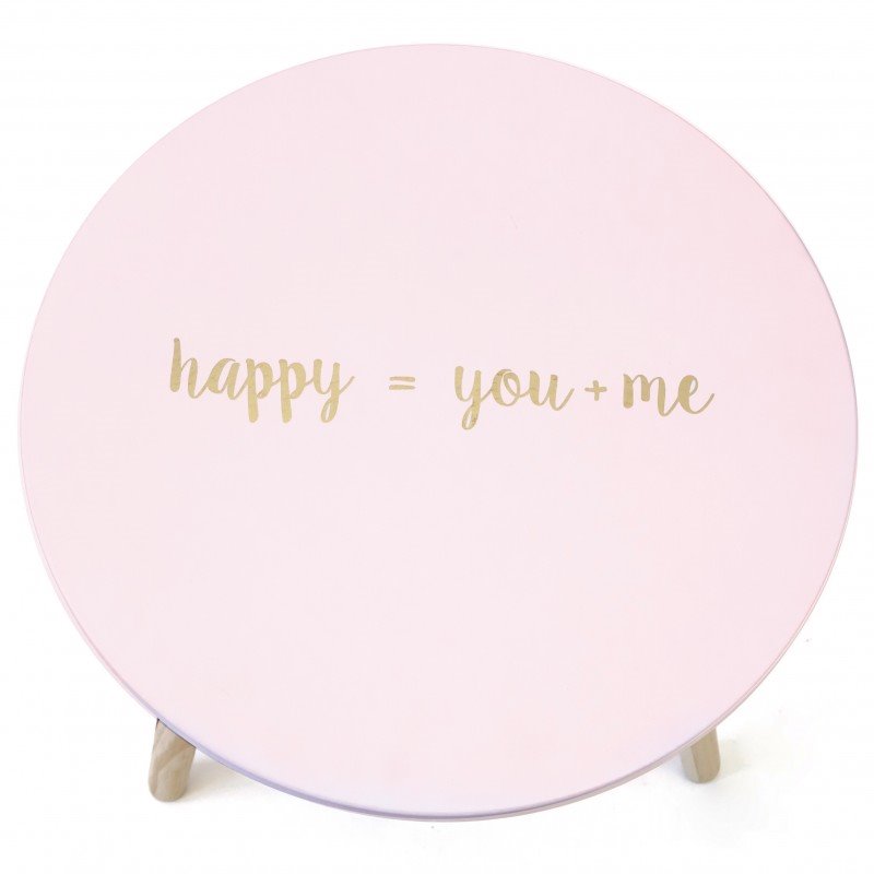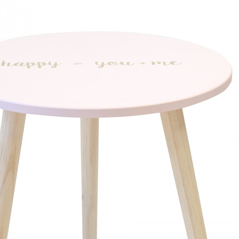 Mesa redonda pequena agradável com mensagem em uma placa cor-de-rosa pálida. Estas mesas económicas da MueMue são a proposta perfeita para melhorar o design de interiores através da decoração chique mais característica. As pernas são feitas de madeira de qualidade sólida.