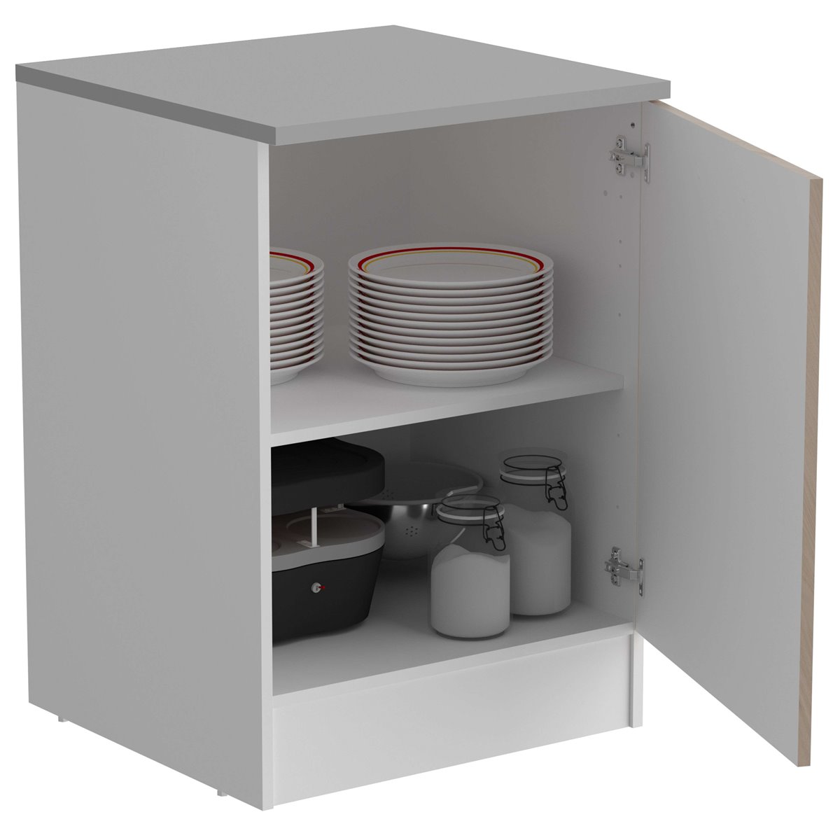 Dê à sua cozinha um toque de modernidade e frescura com o módulo inferior Eko. A fusão do acabamento carvalho Jackson com o branco proporciona um estilo contemporâneo e versátil, capaz de harmonizar com qualquer decoração. Este roupeiro não só embeleza o seu espaço, como também reflete uma sensação de amplitude e luz, ideal para criar um ambiente acolhedor e sofisticado. Este módulo é construído em melamina. Seu design inteligente maximiza o espaço de armazenamento, permitindo uma organização eficiente de seus utensílios e suprimentos. Este módulo é a combinação ideal de funcionalidade e estilo, concebido para satisfazer as necessidades da vida moderna. Adquira já o seu módulo de cozinha Eko com armário. Medidas: Largura 60 cm Altura 86 cm Profundidade 60 cm. São móveis com kit de montagem, que inclui manual de instruções e parafusos. NOTA: Outros móveis ou elementos decorativos nas imagens não estão incluídos. Inclui bancada.