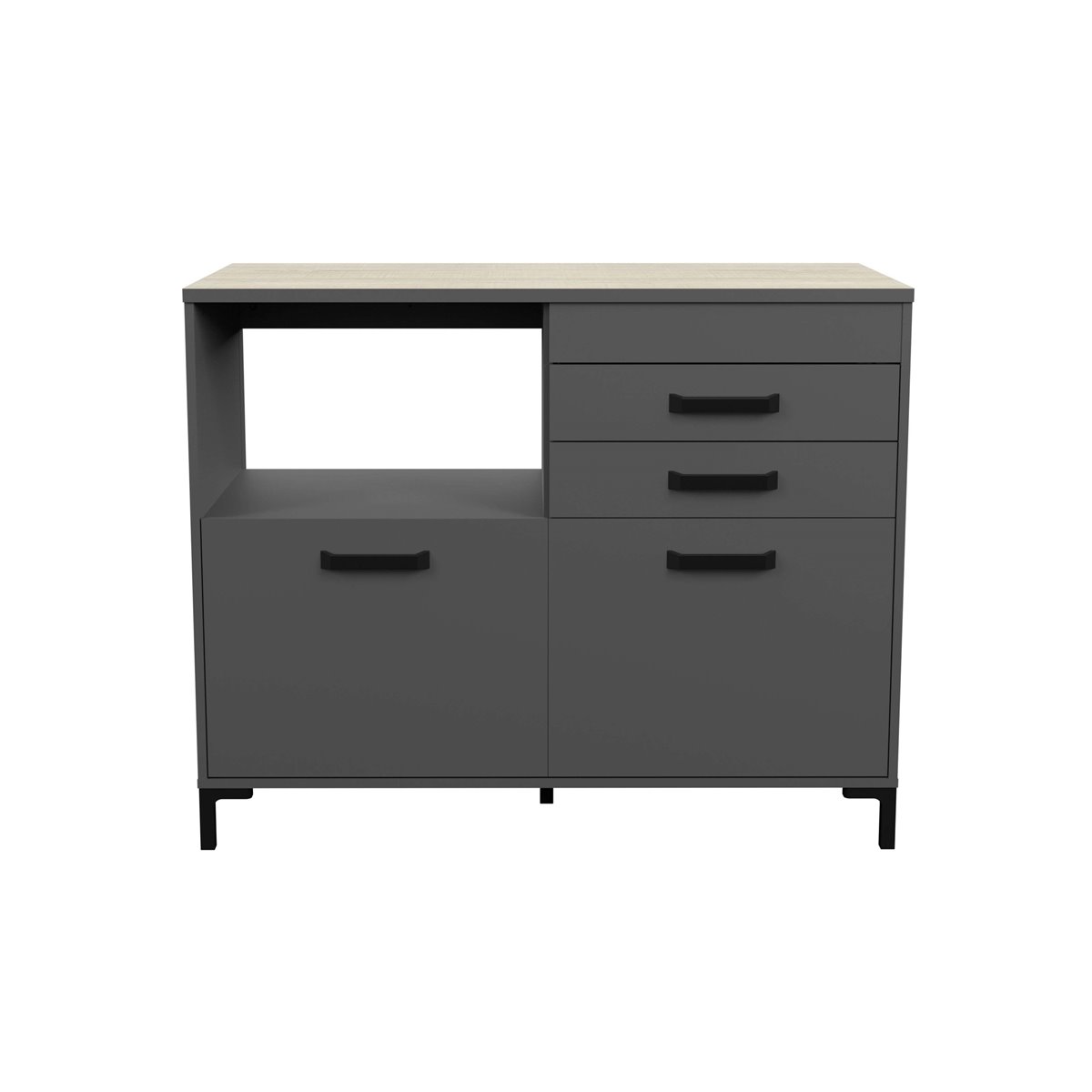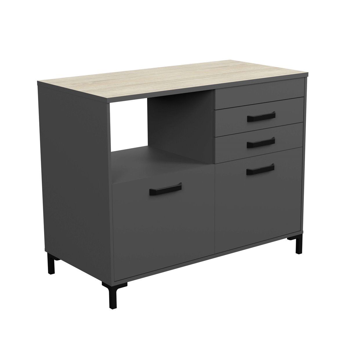 Crie, decore e modernize a sua cozinha, com o nosso módulo de cozinha Smoke com gavetas. Este modelo baixo irá permitir-lhe desfrutar do espaço e dar-lhe-á o toque de estilo, carácter e arrumação que procurava. gosta e mostra tudo o que vale, O armário de cozinha Smoke, feito em melamina resistente, combina cinza escuro com carvalho (efeito madeira clara), Possui duas gavetas, dois armários com portas sanfonadas e um espaço aberto para seu pequeno eletrodoméstico, Se pretende uma nova casa, comece por criar o seu quarto pessoal, Medidas: Largura 118,4 cm Altura 95 cm Profundidade 60 cm Trata-se de um móvel com kit de montagem, que inclui manual de instruções e parafusos.