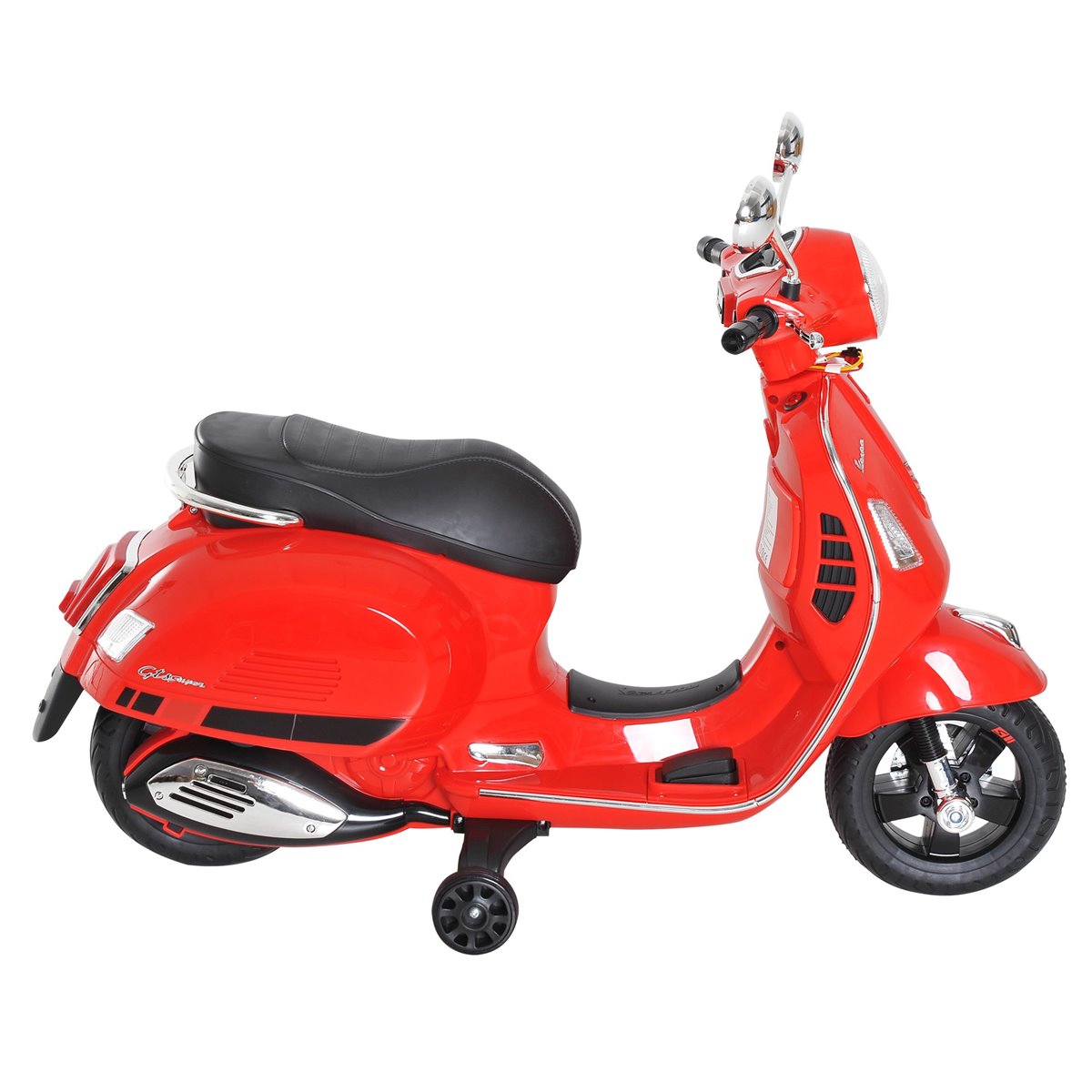 - SEGURA E ESTÁVEL: A trotinete com design Vespa é adequada para crianças com mais de 3 anos e com um peso máximo de 25 kg. Equipada com 2 rodas grandes e 2 rodas auxiliares pequenas, que oferecem uma grande estabilidade. - PEDAL ACELERADOR: funciona como uma verdadeira mota com um pedal acelerador e uma velocidade máxima de 3 km/h. - TEMPO DE CARGA: 8-12 horas para 45 minutos de utilização contínua. Possui um painel com luzes que indicam o estado da bateria. - MÚSICA INCORPORADA: possui altifalante e música para maior diversão e segurança. A sua entrada USB permite-lhe reproduzir a música que desejar em formato MP3. - MEDIDAS TOTAIS: 102x50,5x75,5 cm; Tamanho da roda: Ф23x7,5cm (LxPxA); Capacidade máxima de carga: 25 kg (Utilizar sob supervisão de um adulto)