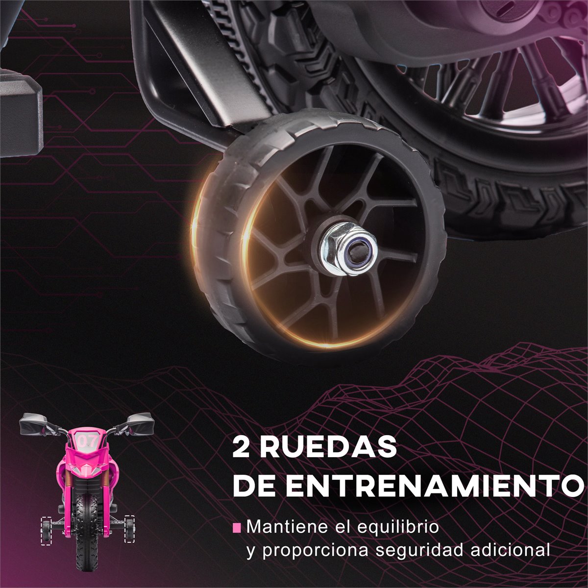 Deixe que os seus filhos se sintam como verdadeiros condutores com a motocicleta elétrica AIYAPLAY! Equiparada com duas baterias recarregáveis de 6V, esta moto proporciona até uma hora de diversão. As rodas de apoio oferecem estabilidade adicional enquanto se deslocam a uma velocidade segura de 3 km/h. Com sons emocionantes de buzina e arranque do motor, é a escolha ideal para pequenos aventureiros de 3 a 8 anos, viverem momentos inesquecíveis e explorarem o exterior Características: - Motocicleta elétrica para que os pequenos se sintam como verdadeiros condutores - As baterias recarregáveis de 6V garantem 1 hora de diversão contínua - Equipada com rodas de apoio para maior estabilidade e segurança - Velocidade segura de 3 km/h com interruptor de botão para fácil controlo - A buzina e o som de arranque realçam a experiência realista da motocicleta - Dois motores de 6V projetados para passeios suaves em superfícies planas - Adequada para crianças dos 3 aos 8 anos - Requer montagem Especificaciones: - Cor: Rosa - Material: Plástico e metal - Medidas totais: 105x57x62 cm (CxLxA) - Medidas do assento: 23x12x39 cm (CxLxA) - Medidas das rodas: Ø30x8 cm (DxA) - Velocidade: 3 km/h - Motor: 2 x 6V - Bateria: 6V 4,5A - Tempo de carregamento: 8-12 horas - Tempo de funcionamento: 1 hora - Carga máxima: 30 kg - Idade certificada: + 3 anos - Idade recomendada: 3-8 anos - Referência: 370-378V91PK - Nota Supervise sempre os seus filhos enquanto utilizam o carro. O tempo de carregamento não deve exceder 20 horas O pacote inclui: - ● 1 x Mota elétrica para crianças; ● 1 x Manual de instruções