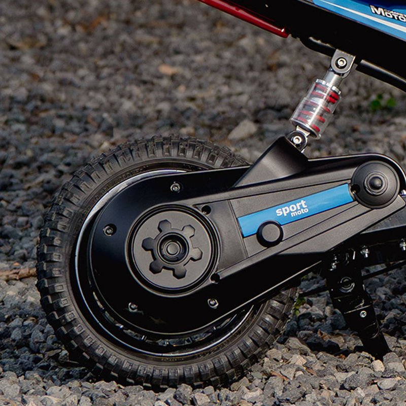O seu pequeno sonha com aventuras fora do asfalto? Esta mota elétrica infantil da AIYAPLAY é ideal para explorar relva e caminhos de cascalho em segurança. Com acelerador de punho para um controlo suave, assento confortável e estilo motocross, oferece uma experiência real para viver grandes histórias ao ar livre. Características: - Esta moto elétrica para crianças inclui um motor de 24V 250W e 3 opções de velocidade para passeios controlados - Tem pneus de 12" e suspensão traseira que permitem recorrer terrenos irregulares com suavidade - O acelerador de punho giratório proporciona uma experiência de condução mais realista - O assento ergonómico de couro sintético garante um passeio confortável para as crianças - Conta com duas baterias de 12V 7AH para oferecer mais tempo de jogo sem interrupções - Está construída com estrutura de PP e metal para uma durabilidade e resistência superiores - A moto infantil é recomendada para crianças de 8 a 12 anos e suporta até 65 kg - Requer montagem Especificaciones: - Cor: Vermelho e preto - Material: PP e metal - Medidas totais: 119x64x76,5 cm (CxLxA) - Medidas do assento: 48,5x16,5 cm (CxL) - Altura do assento: 50 cm - Medidas das rodas: Ø30,5 cm - Velocidade: 6-16 km/h - Motor: 24V 250W - Bateria: 12V 7AH x 2 - Tempo de carga: 8-12h - Autonomia de funcionamento: 40 min - Carga máxima: 65 kg - Idade recomendada: 8-12 anos - Referência: 370-393V90RD O pacote inclui: - ● 1 x Mota elétrica infantil; ● 1 x Manual de instruções
