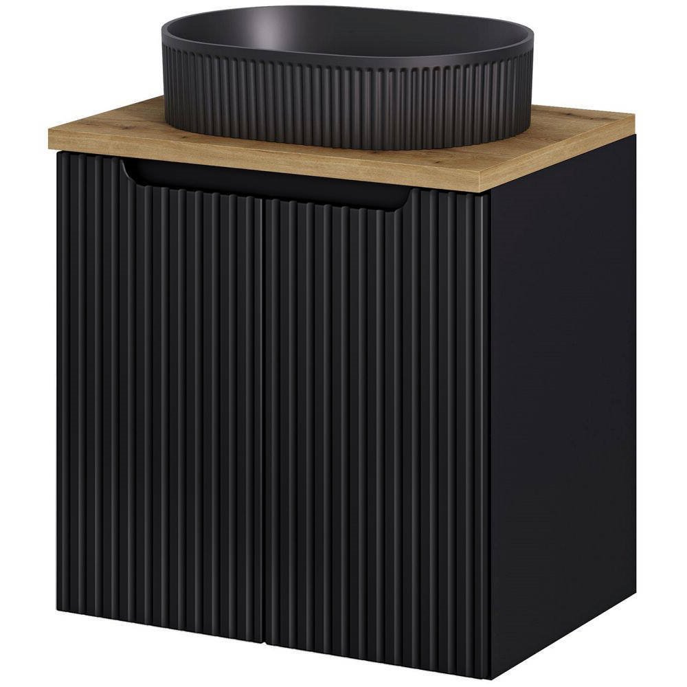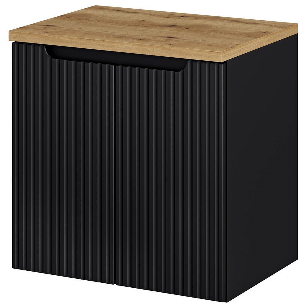 Móvel de toucador 60cm, preto com carvalho, frente estriada - SKELBOLU-BLACK