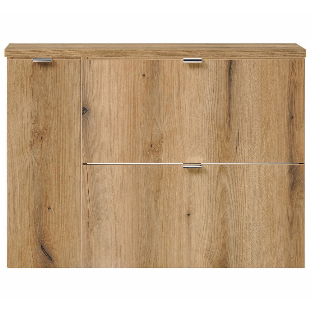 - Design moderno e intemporal com aspeto de madeira - Painel traseiro aberto do móvel com gavetas - Recorte para sifão na parte de trás da gaveta superior - Ideal para casas de banho pequenas graças à pouca profundidade - Superfícies de alta qualidade e resistentes à humidade - Elevada resistência a riscos