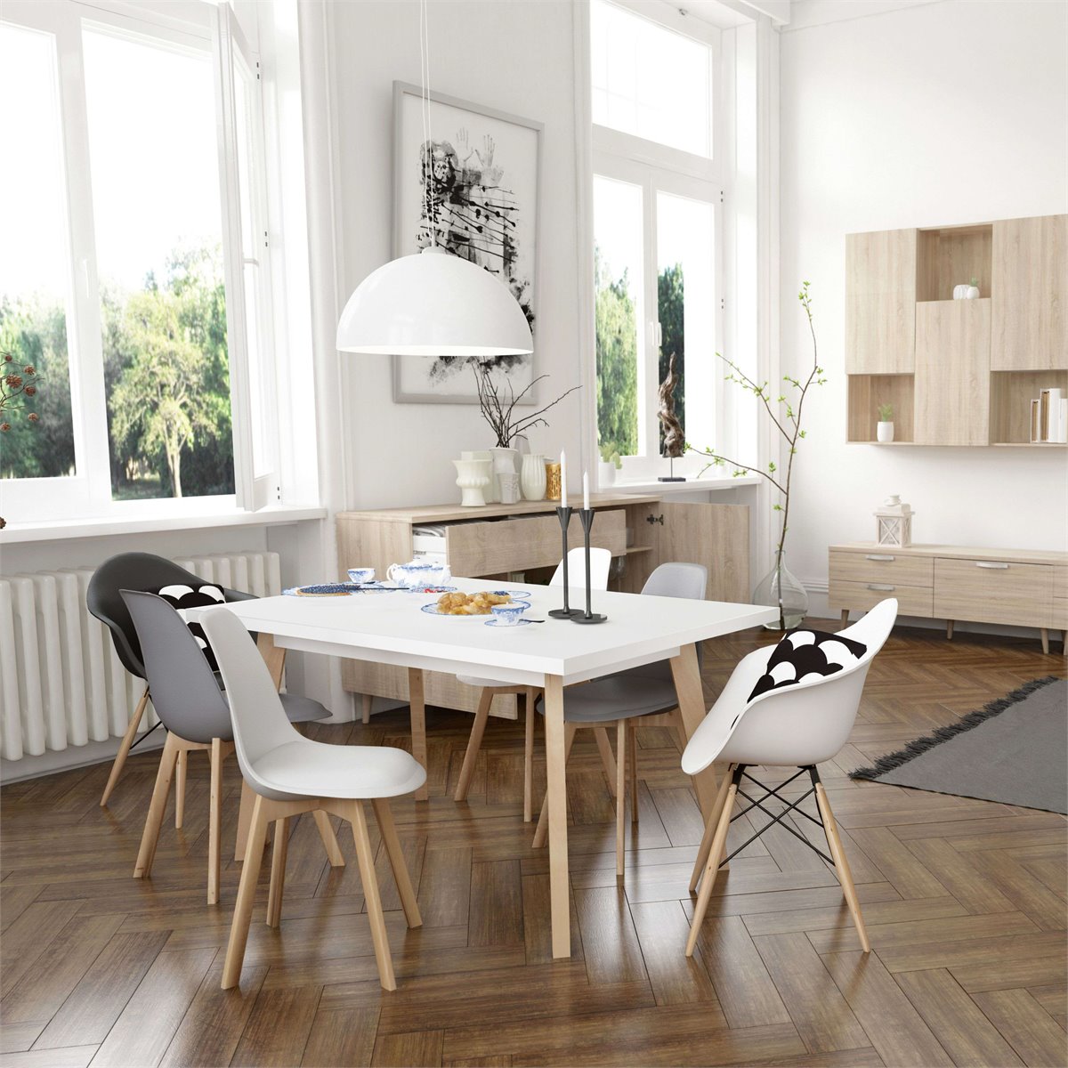 Fantástico pacote de 2 cadeiras nórdicas na cor branca. Seu design e estilo nórdico e moderno são uma tendência em decoração de interiores, então sua sala de estar ficará moderna graças a essas maravilhosas cadeiras, feitas de polipropileno, um material muito fácil de limpar. Compre essas cadeiras e aproveite todas as suas vantagens a um ótimo preço! A base acolchoada deste conjunto de 2 cadeiras é estofada em polipropileno, assim como a estrutura, e preenchida com espuma, o que lhe proporcionará o máximo conforto. Além disso, as pernas são feitas de madeira maciça de faia, o que confere ao móvel uma aparência robusta. O restante do móvel e objetos decorativos não estão incluídos. Medidas: Largura 48,5 cm Profundidade 56 cm Altura 82,5 cm. Este é um móvel com kit de montagem, que inclui manual de instruções e ferragens.