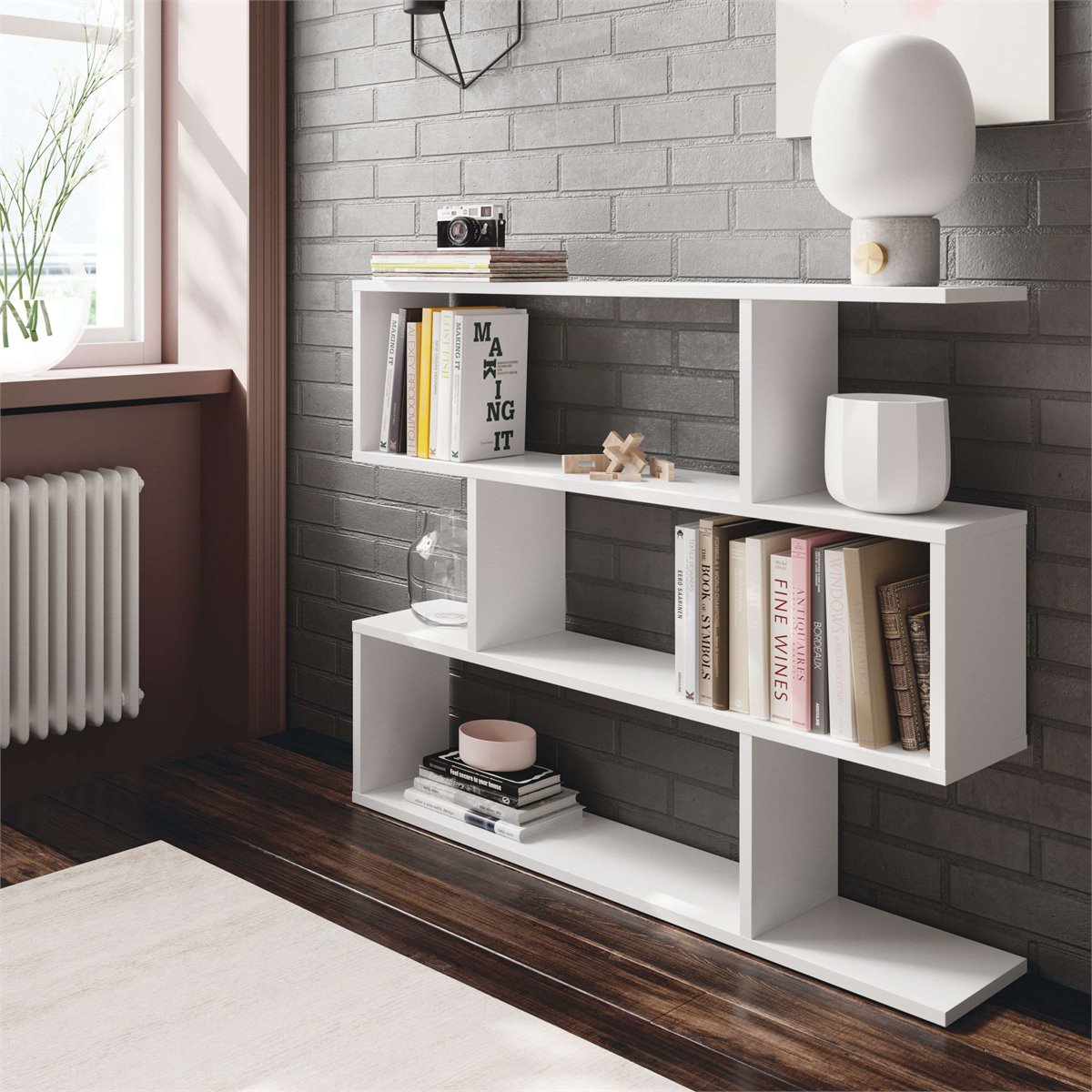 Pacote de duas prateleiras Athena em branco brilhante com acabamento em melamina. Se pretende dar um toque diferente à sua sala ou mesmo ao seu escritório, com este pack de estantes poderá dar aquele toque que procura graças ao seu design moderno, sofisticado e nórdico. Agora você pode levar esse pack estruturado para que tudo fique organizado e lindo. A prateleira pequena é estruturada com 6 compartimentos enquanto a prateleira alta possui 12 compartimentos. Além disso, graças ao seu design nórdico branco, não terá problemas em combiná-lo com o resto do mobiliário da divisão. Os elementos decorativos que aparecem nas imagens não estão incluídos. Medidas da prateleira baixa: Altura 97 cm, Largura 110 cm, Profundidade 24 cm || Medidas da prateleira alta: Altura: 192 cm, Largura 80 cm, Profundidade 24 cm Trata-se de um móvel com kit de montagem, que inclui manual de instruções e parafusos.