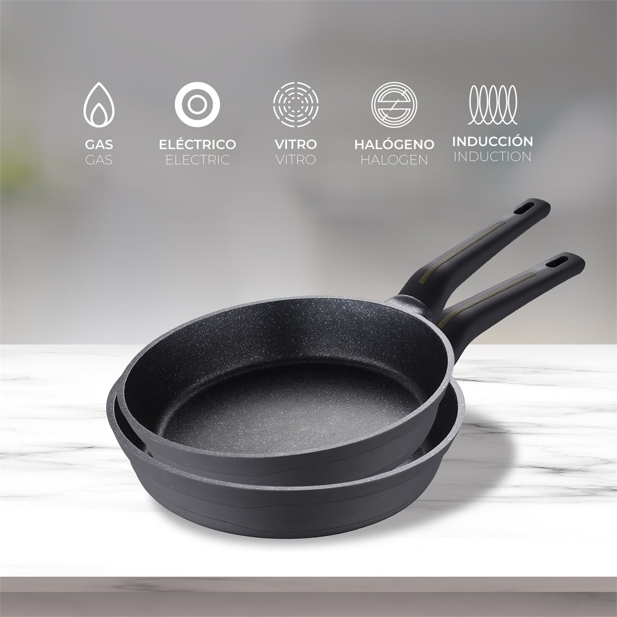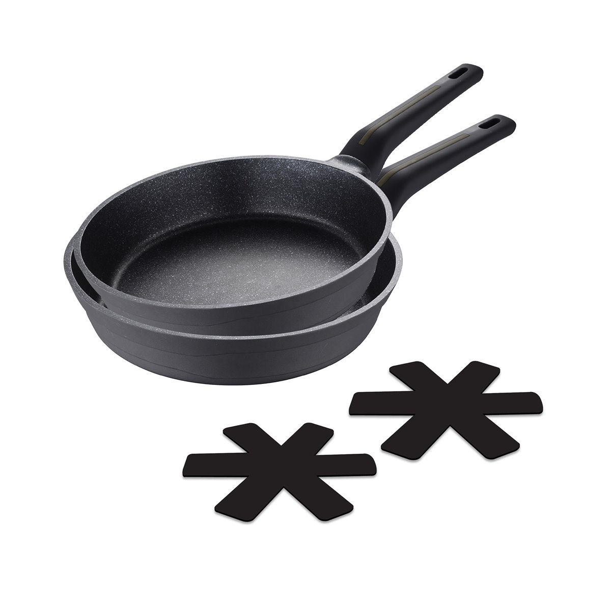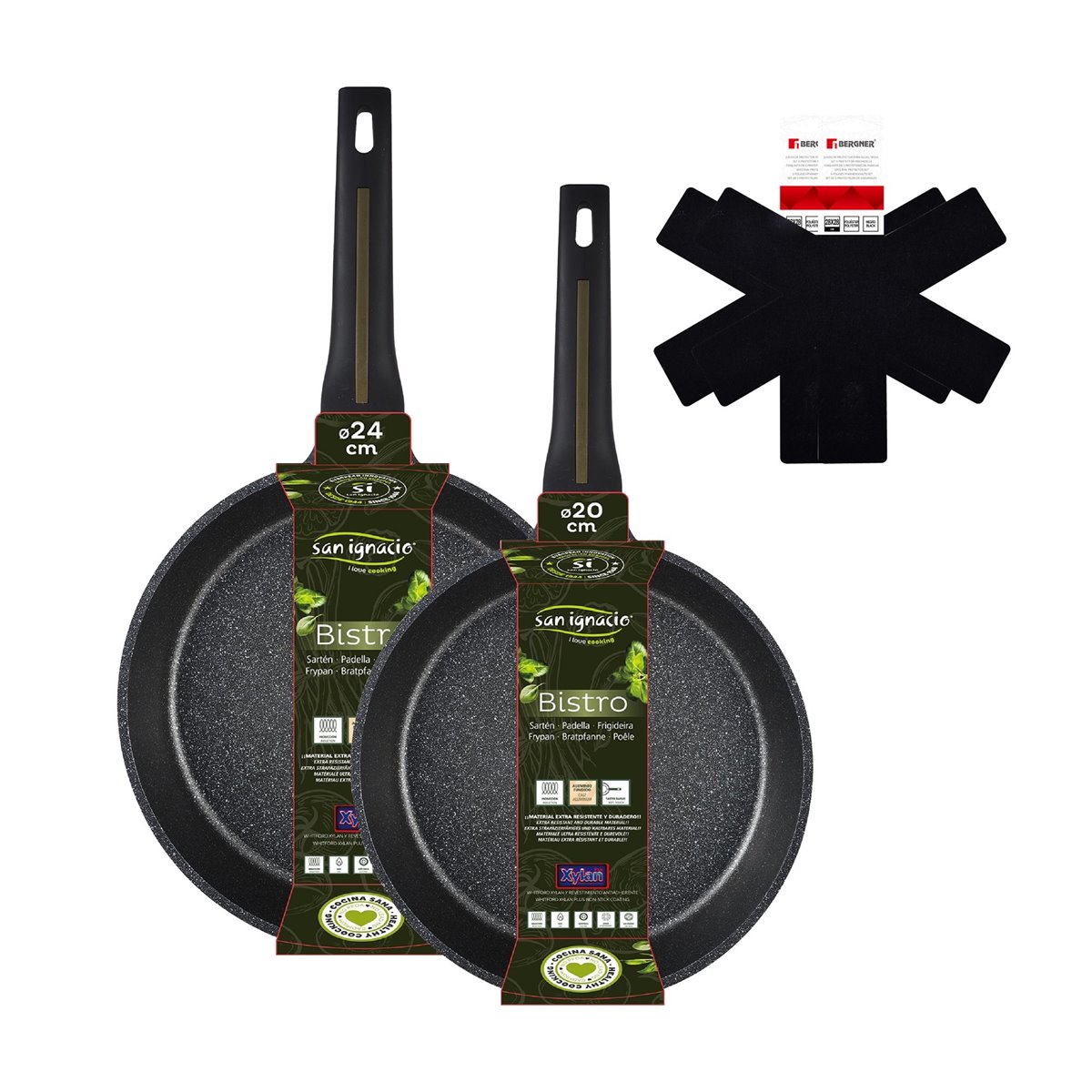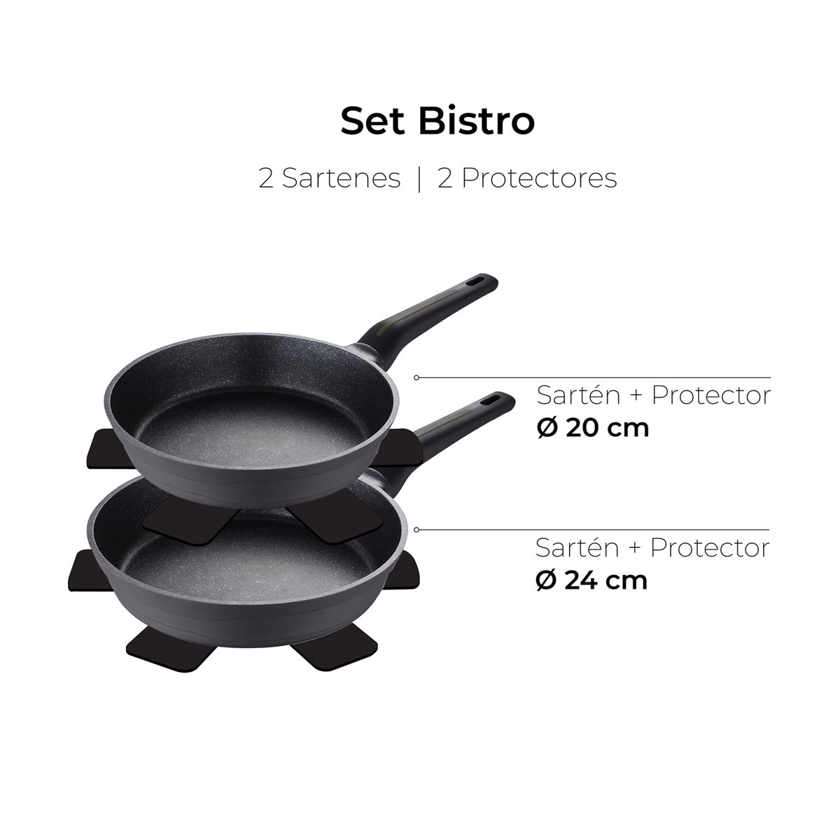 Escolha entre os conjuntos que incluem panelas de 20 e 24 cm com 2 protetores incluídos para armazenamento seguro.