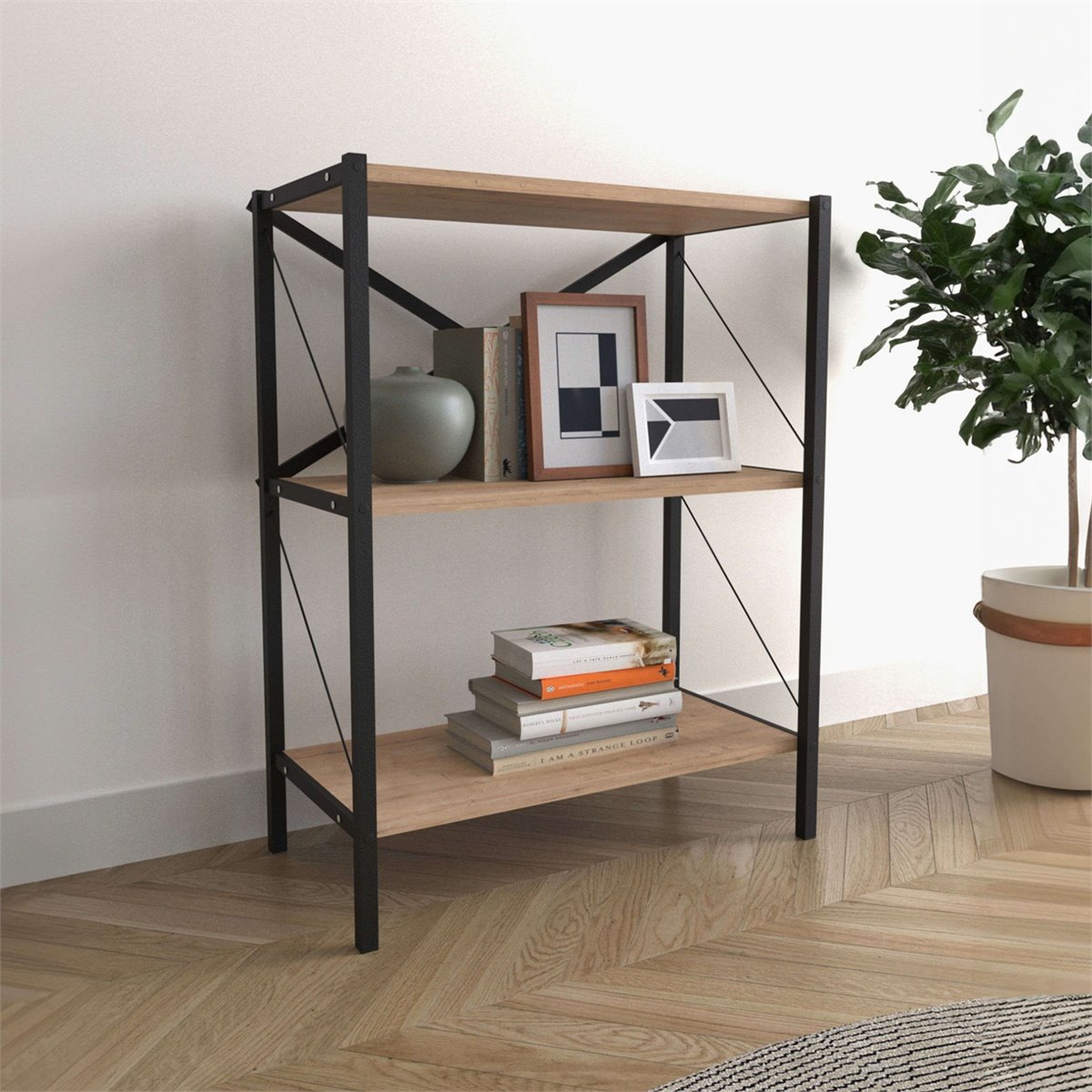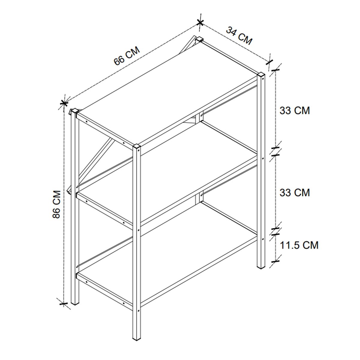 Renove seu espaço com a estante modelo Rus, um móvel que alia estética industrial e praticidade. Este armário de 3 níveis, com a sua atraente combinação de cores preto e carvalho, é a solução ideal para organizar e expor os seus objetos favoritos. A estante Rus oferece um design e aparência robustos que complementam qualquer decoração, da mais moderna à mais tradicional, tornando-se um complemento ideal para qualquer sala de estar. Fabricadas em melamina e metal, as estantes modelo Rus foram pensadas para uma arrumação inteligente, permitindo maximizar o espaço. Perfeito para livros, enfeites e muito mais, sua estrutura e design permitem organizar e exibir seus objetos favoritos com facilidade e esforço. Medidas: Largura 66 cm Altura 85cm Profundidade 34 cm Trata-se de um móvel com kit de montagem, que inclui manual de instruções e parafusos.