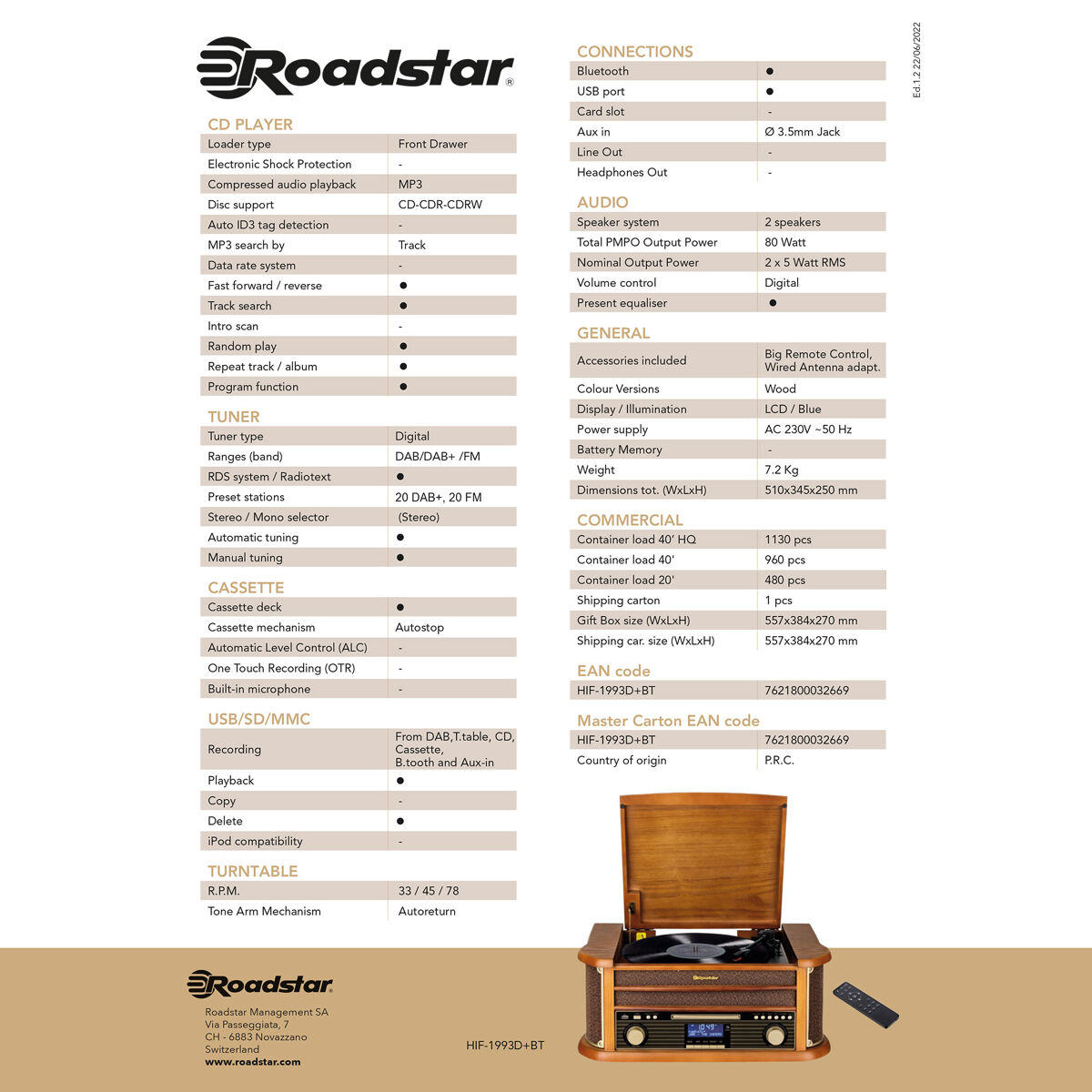 - Leitor de CD: Reproduz formatos CD, CDR, CDRW e CD-MP3. Tem procura de pistas, reprodução aleatória, repetição de pistas e avanço/retrocesso rápido. Tem também um leitor de cassetes.