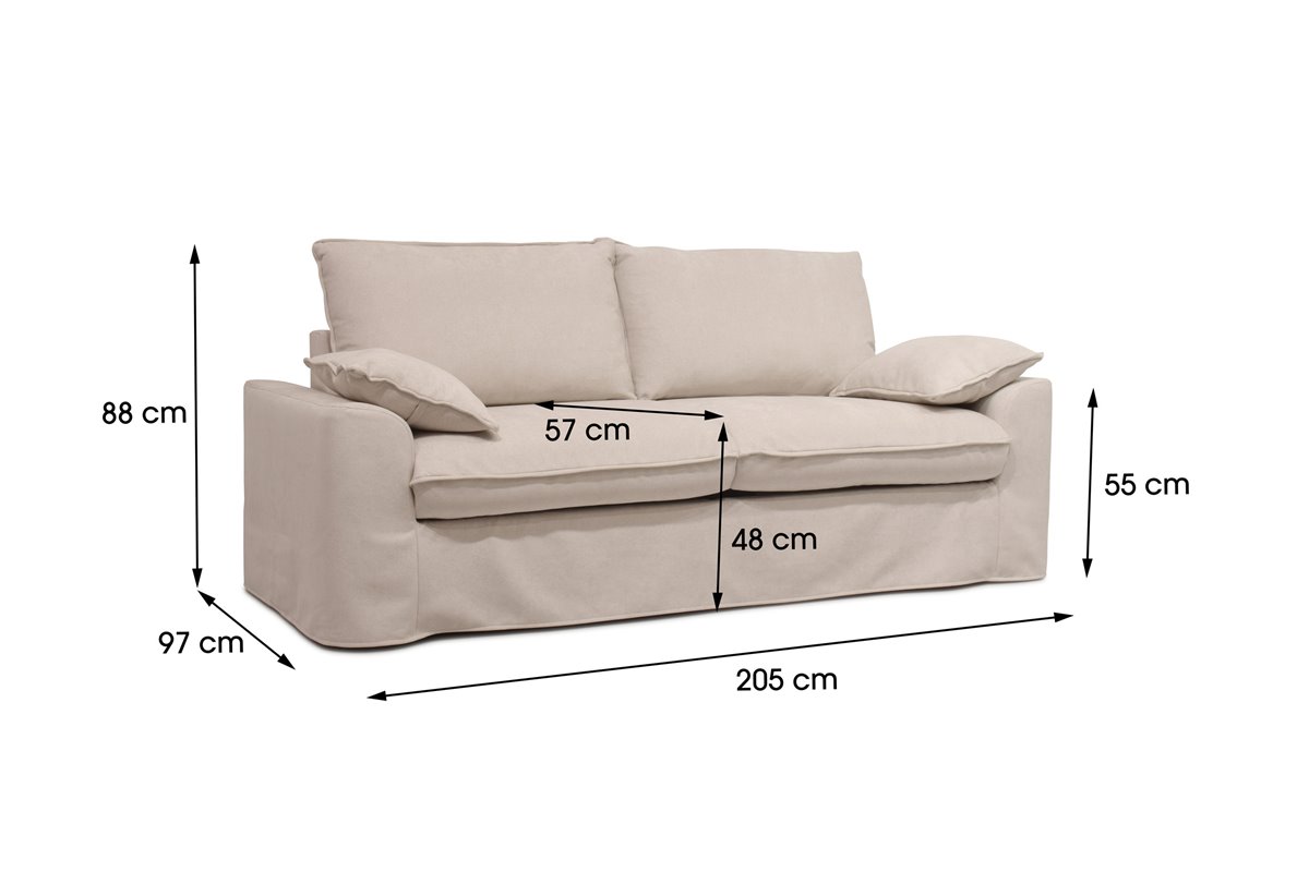 Renove o seu espaço com o sofá VIALO cor bege! Com uma estrutura robusta em madeira e revestimento em tecido de alta qualidade, este sofá de 3 lugares é a combinação perfeita entre conforto e elegância. Os pés em madeira natural conferem-lhe um toque moderno e sofisticado, já o design com almofadas removíveis facilita a limpeza e manutenção. Aproveite as medidas de 205 cm de largura, 88 cm de altura e 97 cm de profundidade para criar o cantinho aconchegante que você sempre sonhou!