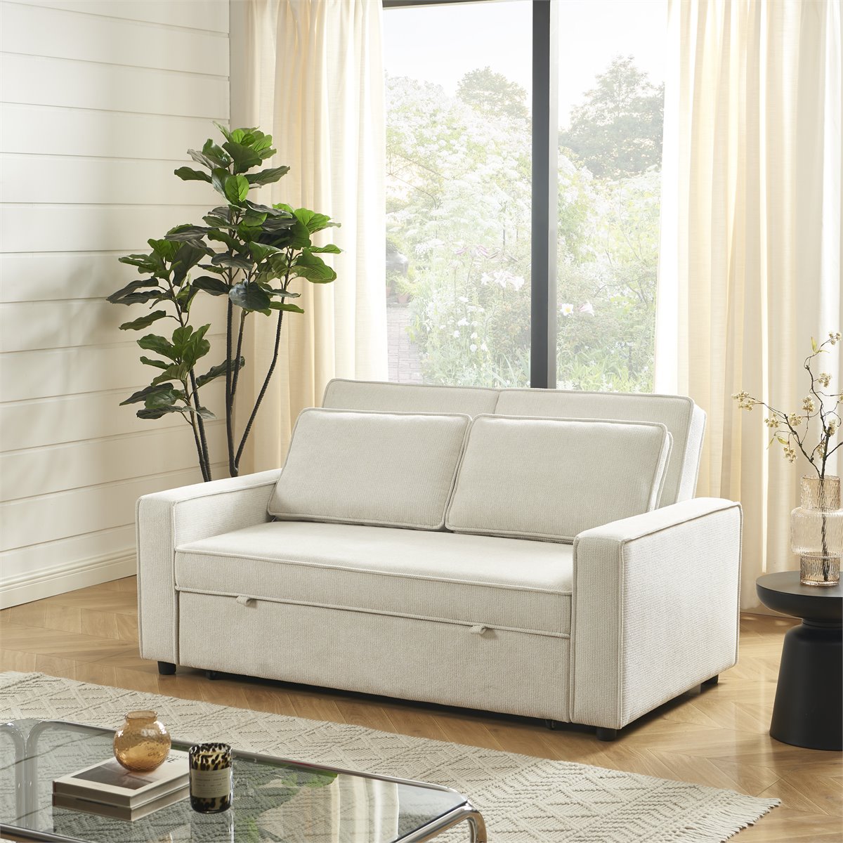 Descubra a versatilidade e elegância do sofá-cama Lola de 2 lugares na sofisticada cor bege. Concebido para satisfazer as suas necessidades, este sofá-cama combina funcionalidade e estilo, sendo a peça central perfeita para qualquer sala de estar. A sua sólida estrutura em contraplacado maciço de eucalipto garante durabilidade e resistência, enquanto o revestimento em tecido suave oferece um conforto incomparável. Com medidas ideais de 172 cm de largura, 94 cm de altura e 91 cm de profundidade, o sofá Lola transforma-se facilmente numa cama confortável de 141x190 cm, proporcionando um espaço acolhedor para os seus convidados ou uma solução prática para espaços pequenos. Não comprometa o design pela funcionalidade: escolha Lola e desfrute do equilíbrio perfeito entre estética e conforto.