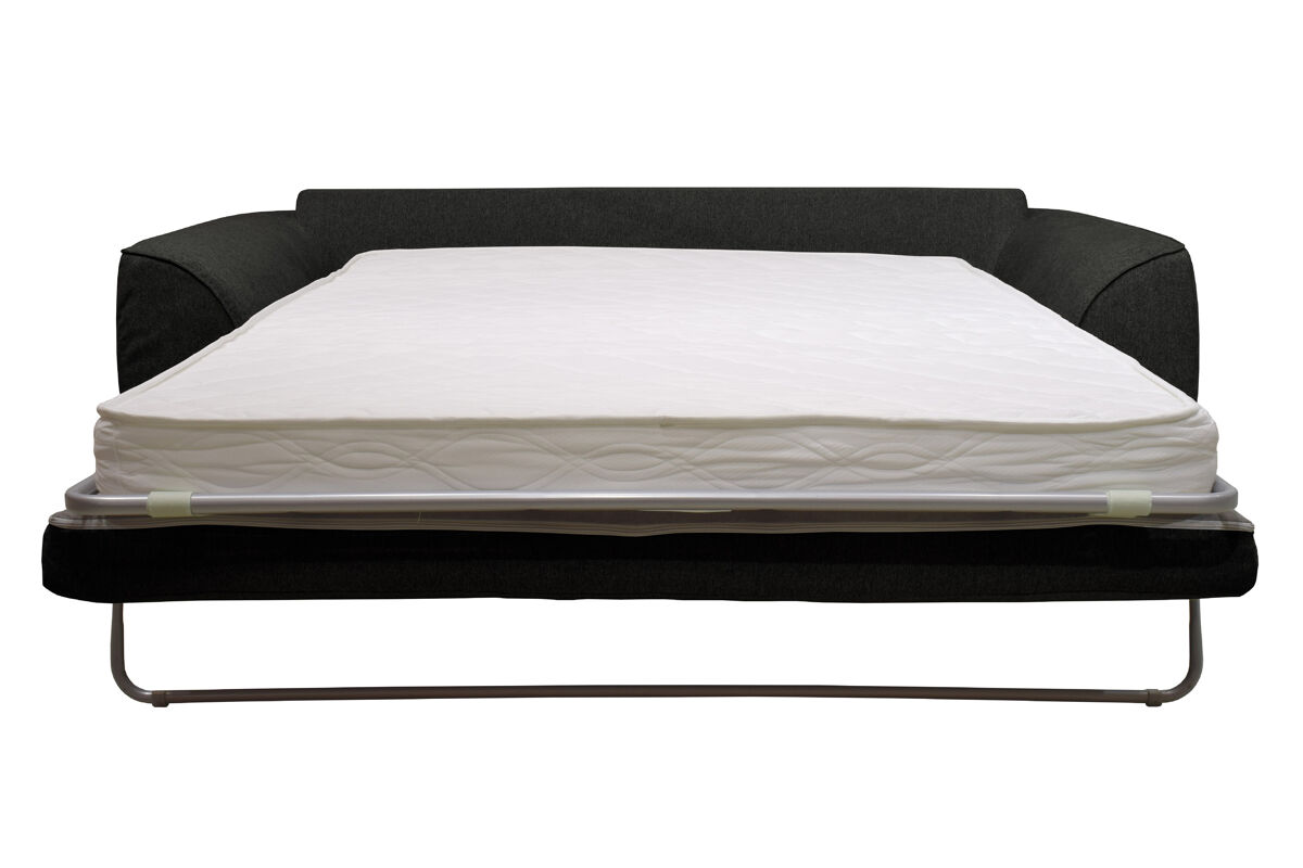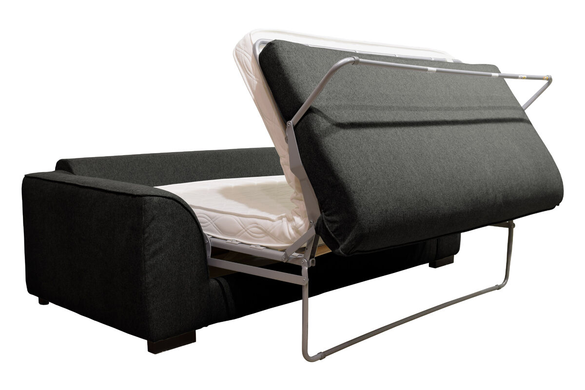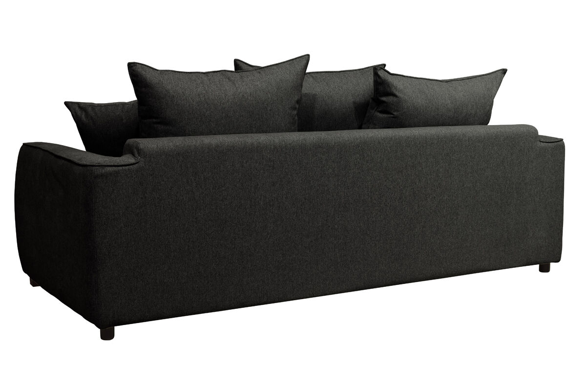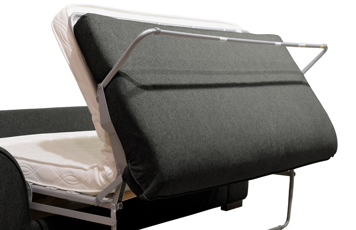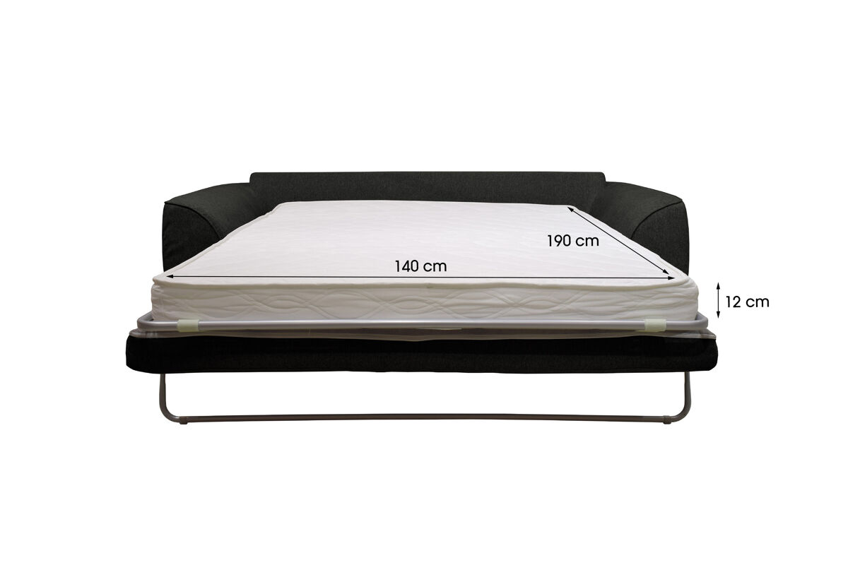 O sofá-cama SAGA de 3 lugares tem um revestimento em tecido Polaris 100% poliéster, pode ser convertido numa cama com medidas 140x190cm. É feito de madeira maciça e aglomerado. Tem um colchão de 12cm de espessura com espuma de 30kg RH (alta resiliência). A parte superior de sua cama é com lâminas de madeira para uma acolhida flexível, a sua parte inferior é com alças elásticas. Os assentos têm uma espuma de 28Kg/m3, as 3 almofadas das costas e as 2 decorativas são 100% fibra, o que permite um conforto ideal. Os pés são em madeira maciça de wenge.