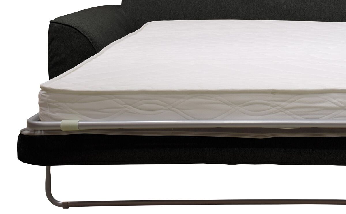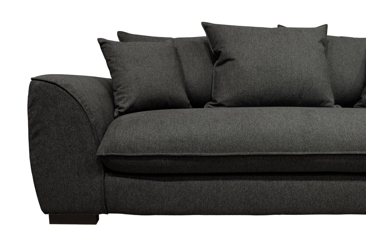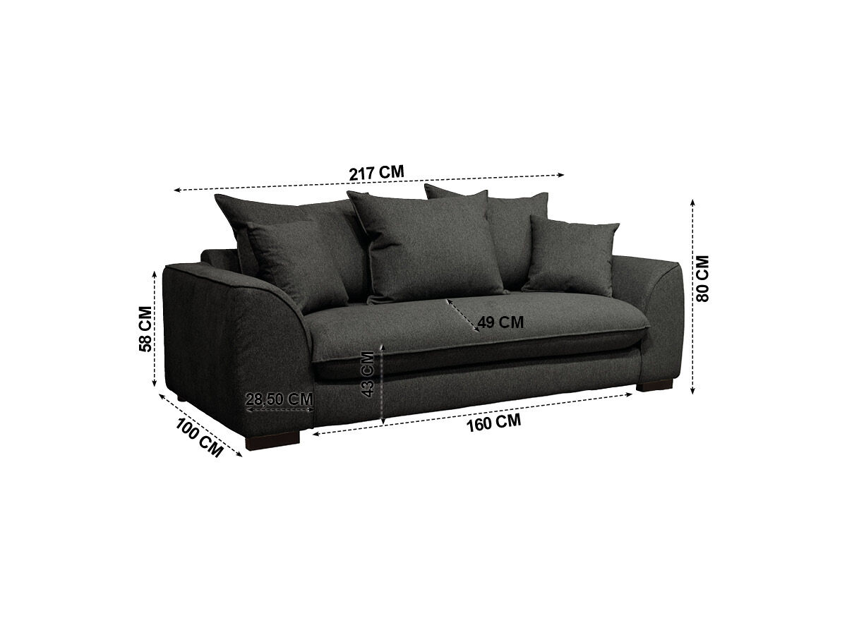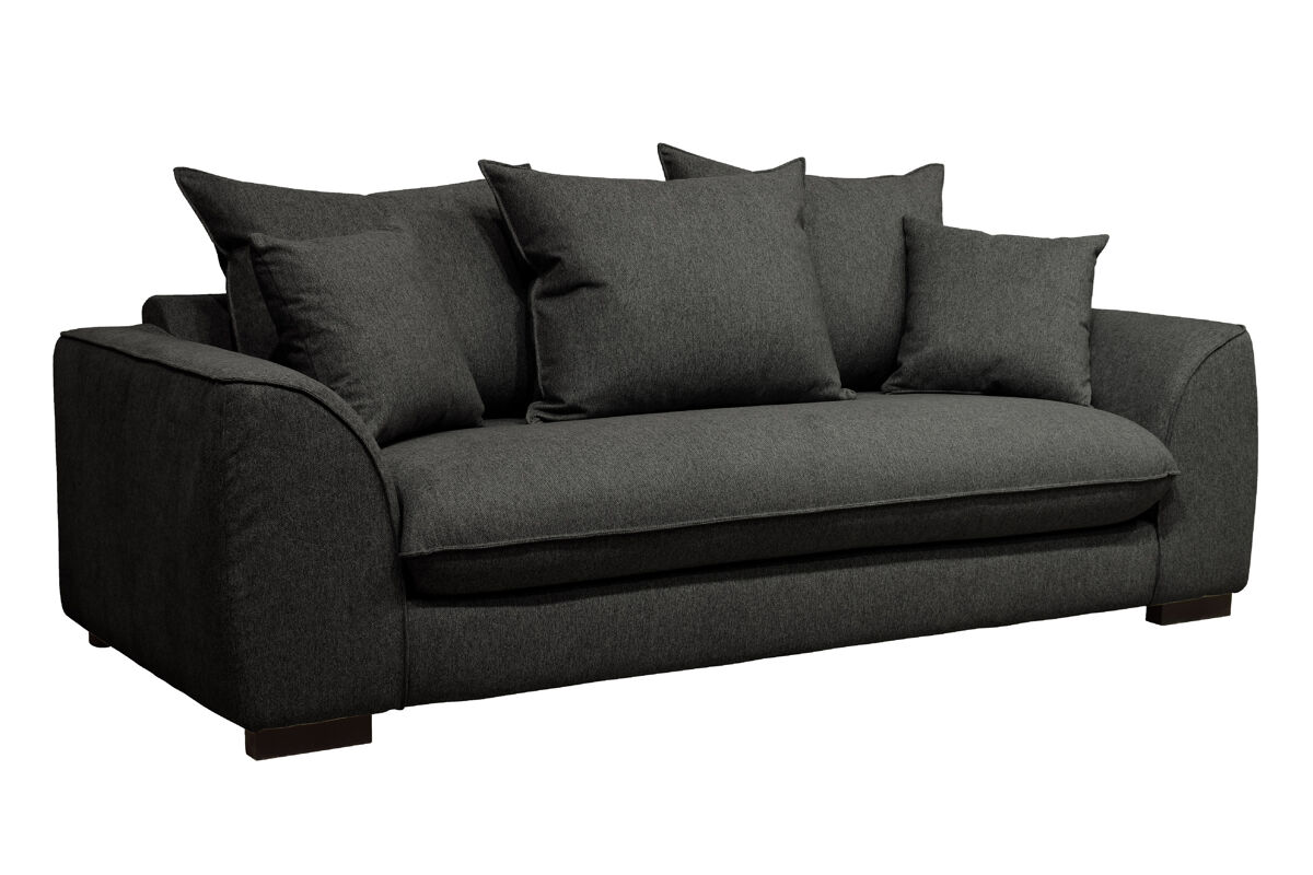 O sofá-cama SAGA de 3 lugares tem um revestimento em tecido Polaris 100% poliéster, pode ser convertido numa cama com medidas 140x190cm. É feito de madeira maciça e aglomerado. Tem um colchão de 12cm de espessura com espuma de 30kg RH (alta resiliência). A parte superior de sua cama é com lâminas de madeira para uma acolhida flexível, a sua parte inferior é com alças elásticas. Os assentos têm uma espuma de 28Kg/m3, as 3 almofadas das costas e as 2 decorativas são 100% fibra, o que permite um conforto ideal. Os pés são em madeira maciça de wenge.