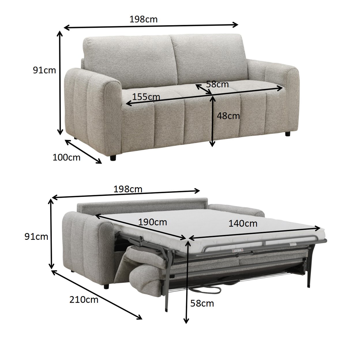 Descubra o equilíbrio perfeito entre estilo, conforto e funcionalidade com o sofá-cama de 3 lugares KUKY. Disponível em cinza. possui uma robusta estrutura em pinho maciço e contraplacado e estofos em tecido macio. Mede 198 cm de largura, 91 cm de altura e 100 cm de profundidade. Não comprometa o conforto e o estilo, compre já o ofá-cama de 3 lugares KUKY cinzento e comece a transformar a sua casa num refúgio predileto!