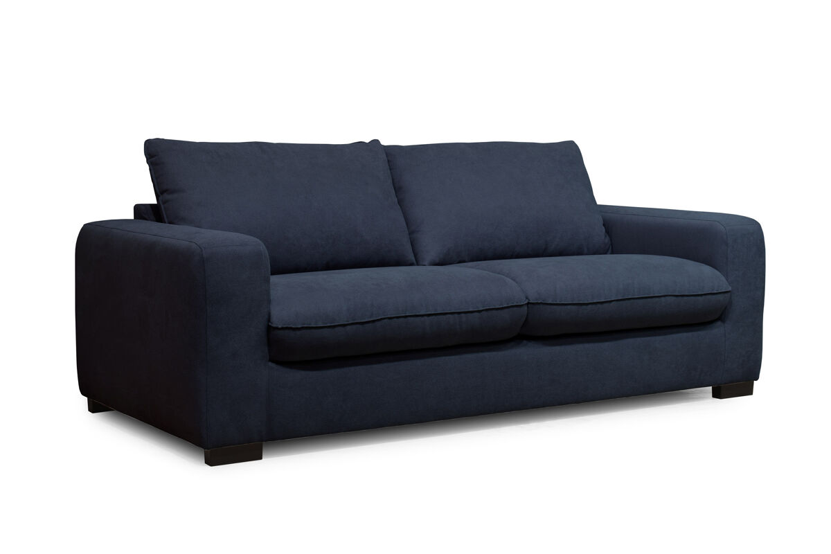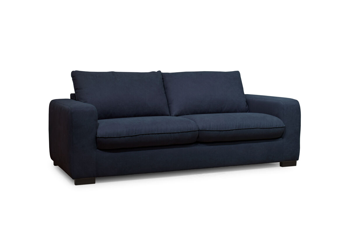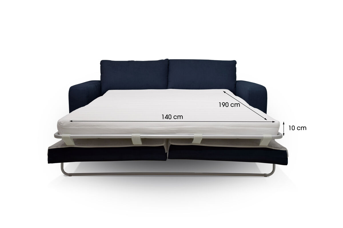 O sofá-cama SWEET 3 lugares tem um revestimento de tecido 100% poliéster Enjoy, e pode ser convertido em uma cama com as medidas 140x190cm. É feito de madeira maciça e aglomerado. Tem um colchão de 10cm de espessura com espuma de 30kg RH (alta resiliência). A parte superior da cama é com lâminas de madeira para uma acolhida flexível, a parte inferior é com alças elásticas. Os assentos têm uma espuma de 28Kg/m3, as 2 almofadas das costas são 100% fibra, o que permite um ótimo conforto das costas. Os pés são em PVC preto.