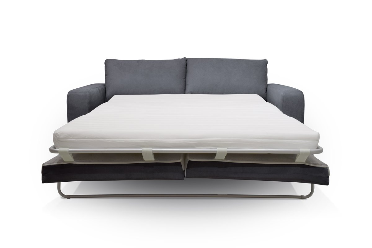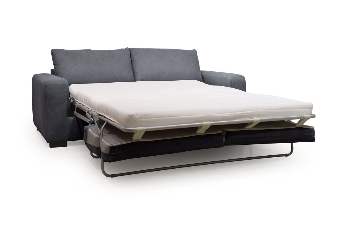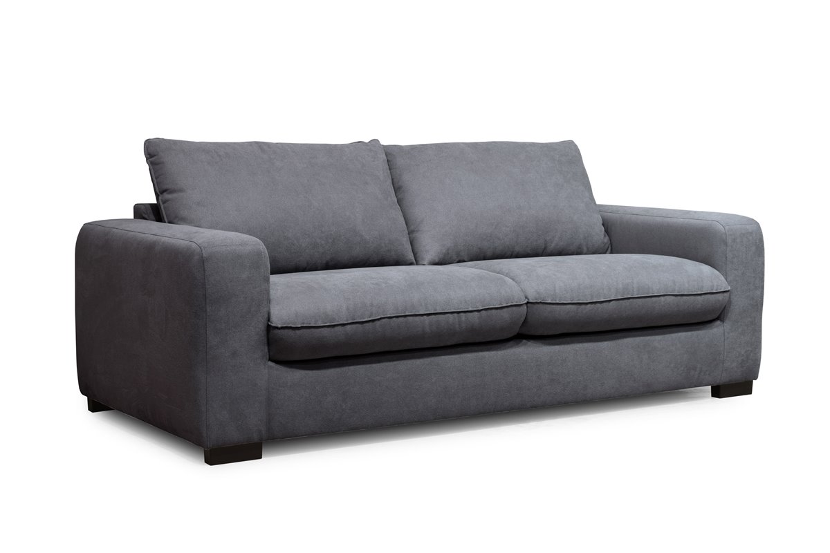 O sofá-cama SWEET 3 lugares tem um revestimento de tecido 100% poliéster Enjoy, e pode ser convertido em uma cama com as medidas 140x190cm. É feito de madeira maciça e aglomerado. Tem um colchão de 10cm de espessura com espuma de 30kg RH (alta resiliência). A parte superior da cama é com lâminas de madeira para uma acolhida flexível, a parte inferior é com alças elásticas. Os assentos têm uma espuma de 28Kg/m3, as 2 almofadas das costas são 100% fibra, o que permite um ótimo conforto das costas. Os pés são em PVC preto.