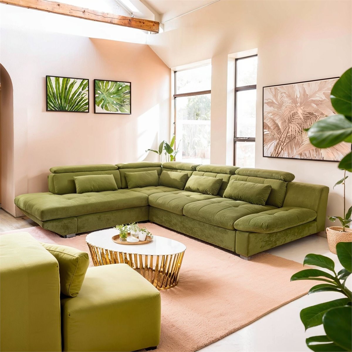 Renove a sua sala com o sofá de canto esquerdo conversível em cama ETERNITY. Um sofá de grandes dimensões. Canto convertível em cama de 222 X 138 cm, com gaveta e 5 almofadas decorativas incluídas. Chaise Longue convertível em cama de 228x138 cm com 3 almofadas decorativas. Estrutura em madeira de faia e contraplacado. Suspensão: molas Zig-Zag. Densidade da espuma nos assentos 38 Kg/m3. Pernas de plástico. Sofá de canto ou sofá em forma de U, com esta opção não vai desperdiçar nem um centímetro da sua sala, porque o formato reto destes sofás de canto incríveis adapta-se perfeitamente a todos os cantos e recantos.